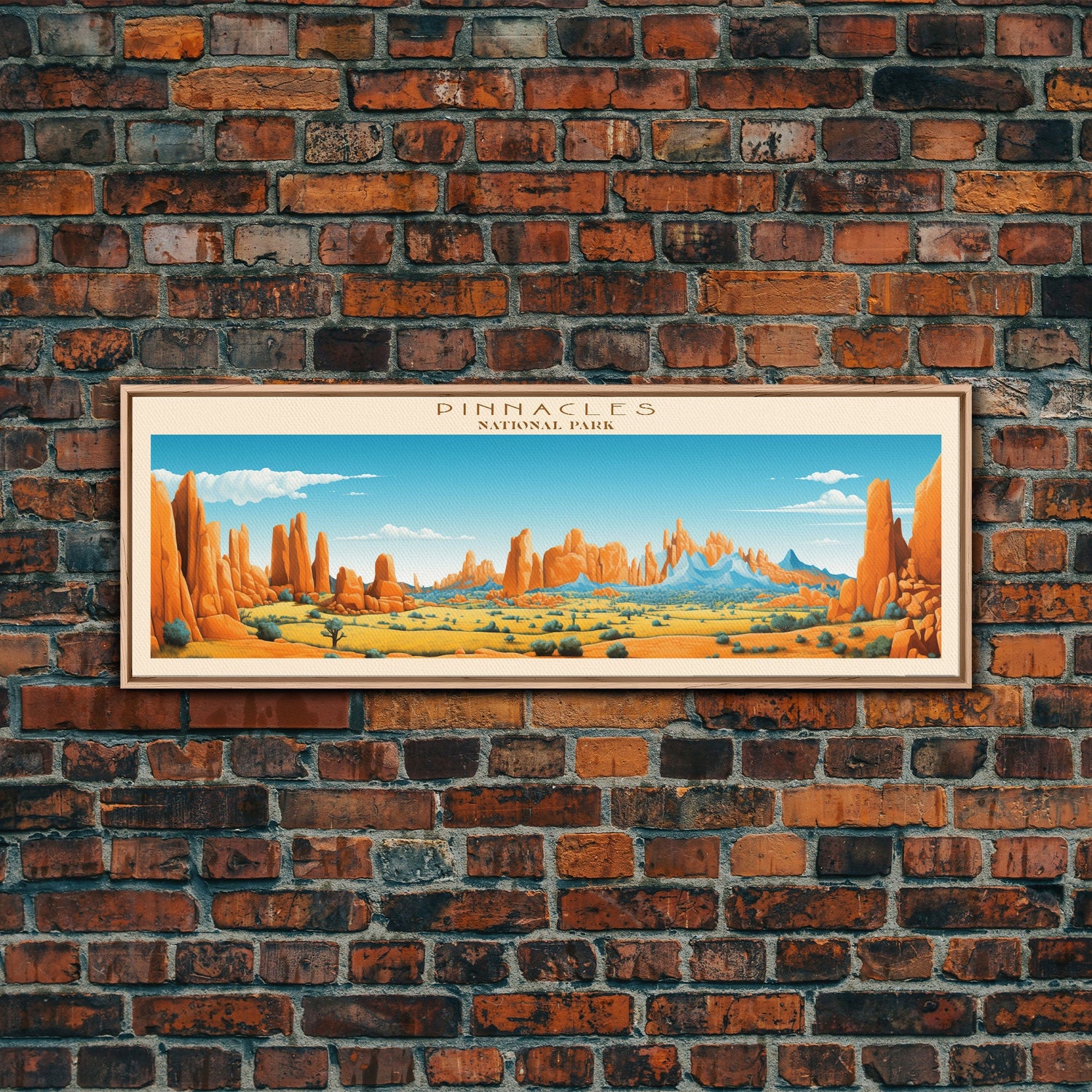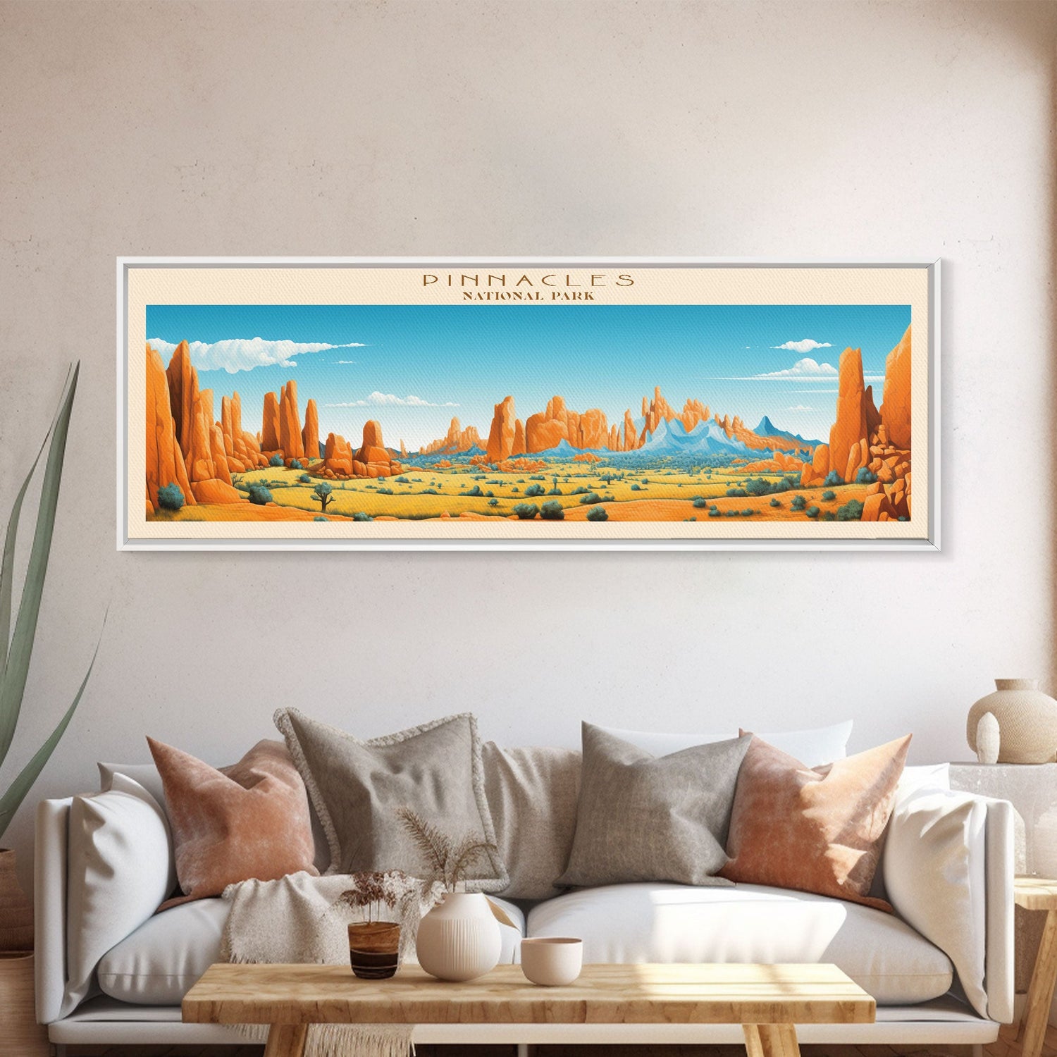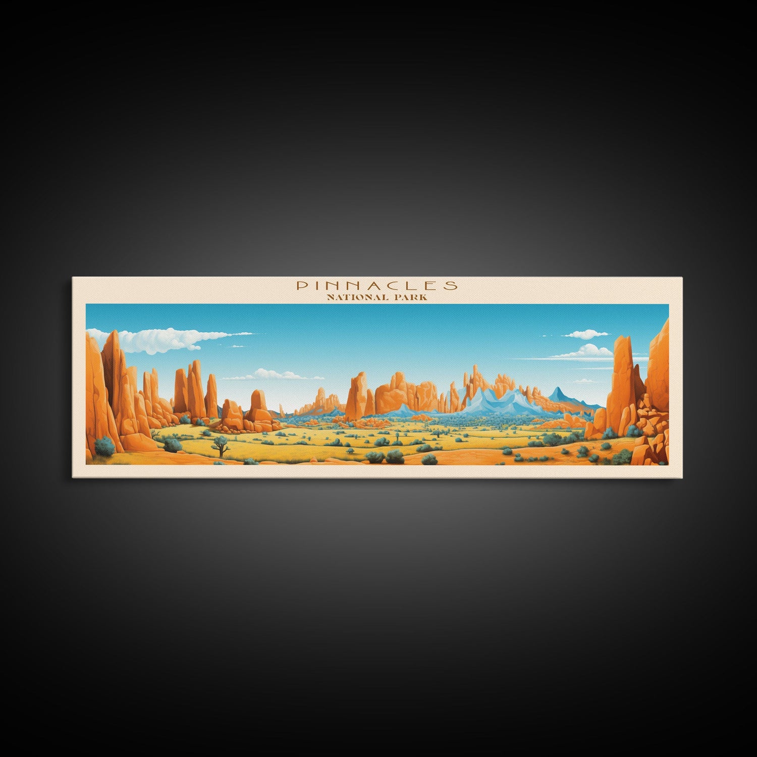 Pinnacles National Park Panoramic Califorrnia Travel Art, National Park Print, Minimalist Travel Art, Midcentury Modern Style Landscape - 10x30 Inches / No Frame - Stretched Canvas Only is backordered and will ship as soon as it is back in stock.