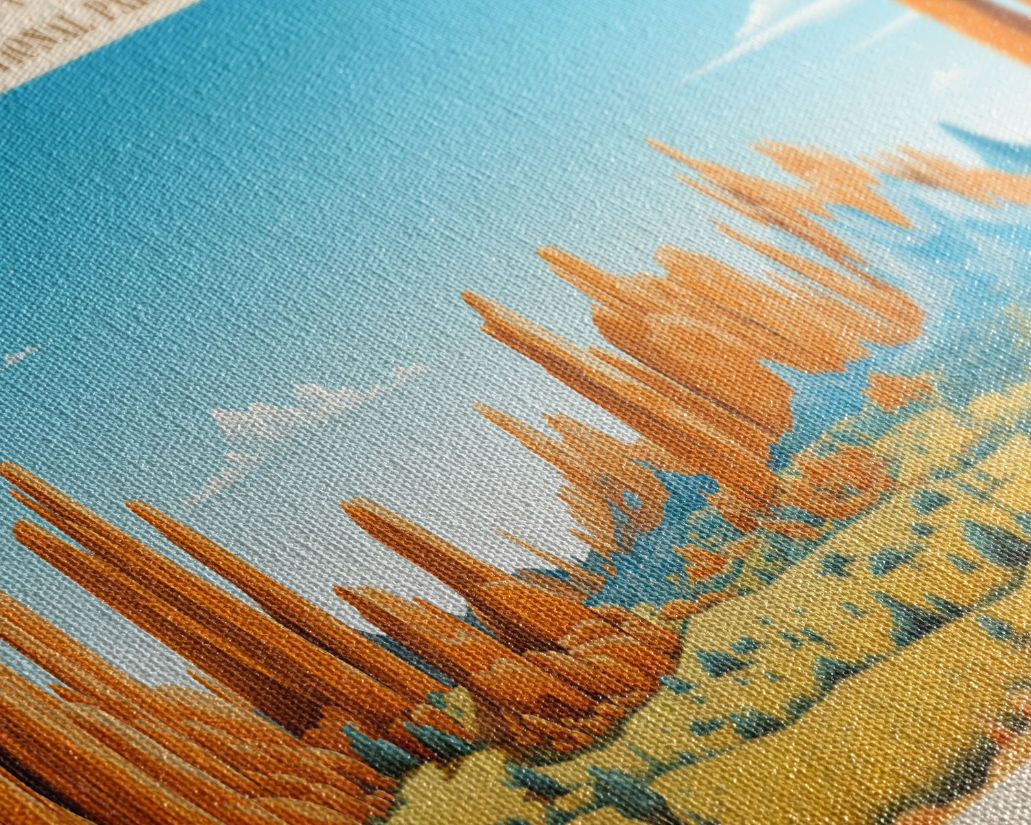 Most of our canvases are made in the USA, with the exception of canvases ordered with the light oak unstained frames, and any large canvases (24x48, 30x60, 16x48 and 20x60) ordered WITH a frame. These are temporarily made in and shipped from Europe, while we try to find a more consistent supplier in the USA.