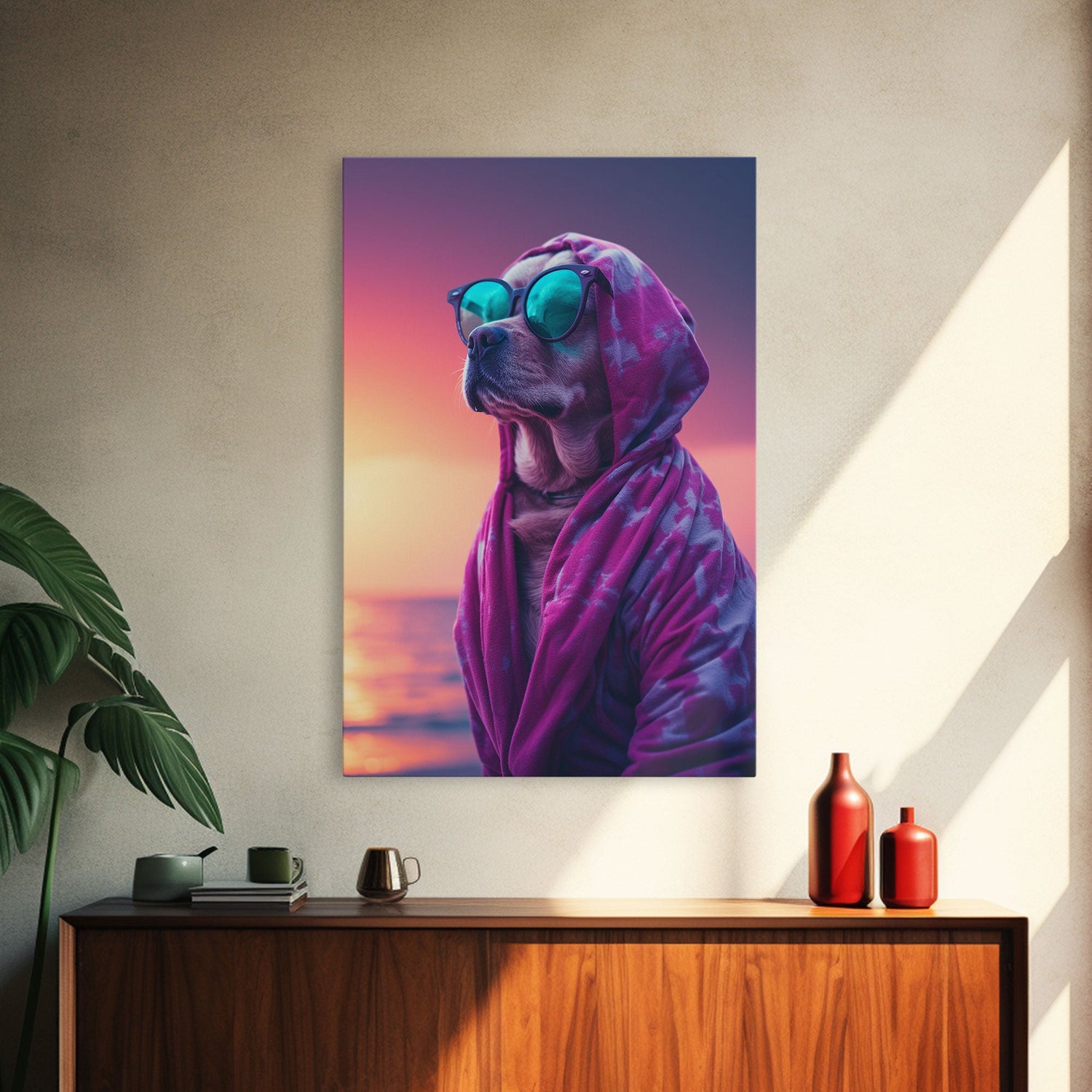 Pit Bull In Pink Hoodie Sunglasses Wall Print, Beach Art, Dog Print, Dog Portrait, Framed Wall Art, Framed Canvas, Wall Print, Wall Canvas - 8x12 Inches / No Frame - Stretched Canvas Only is backordered and will ship as soon as it is back in stock.