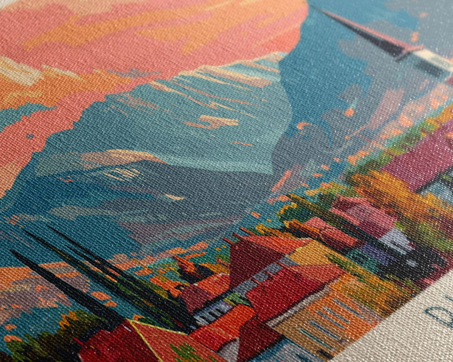 Most of our canvases are made in the USA, with the exception of canvases ordered with the light oak unstained frames, and any large canvases (24x48, 30x60, 16x48 and 20x60) ordered WITH a frame. These are temporarily made in and shipped from Europe, while we try to find a more consistent supplier in the USA.