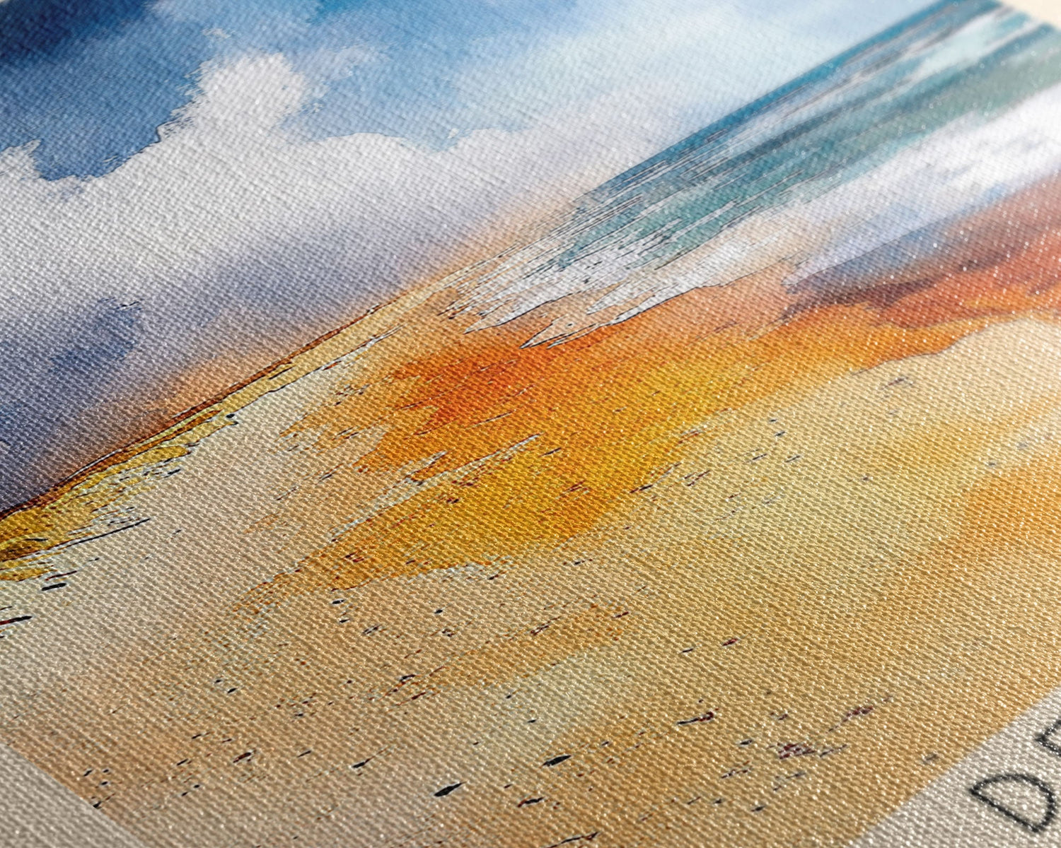 Plage de Piémanson, France Watercolor Print, Vacation Gift, France Wall Art, Beach Painting, Beach Decor, Large Wall Art, Wood Frame Art - 8x12 Inches / No Frame - Stretched Canvas Only is backordered and will ship as soon as it is back in stock.