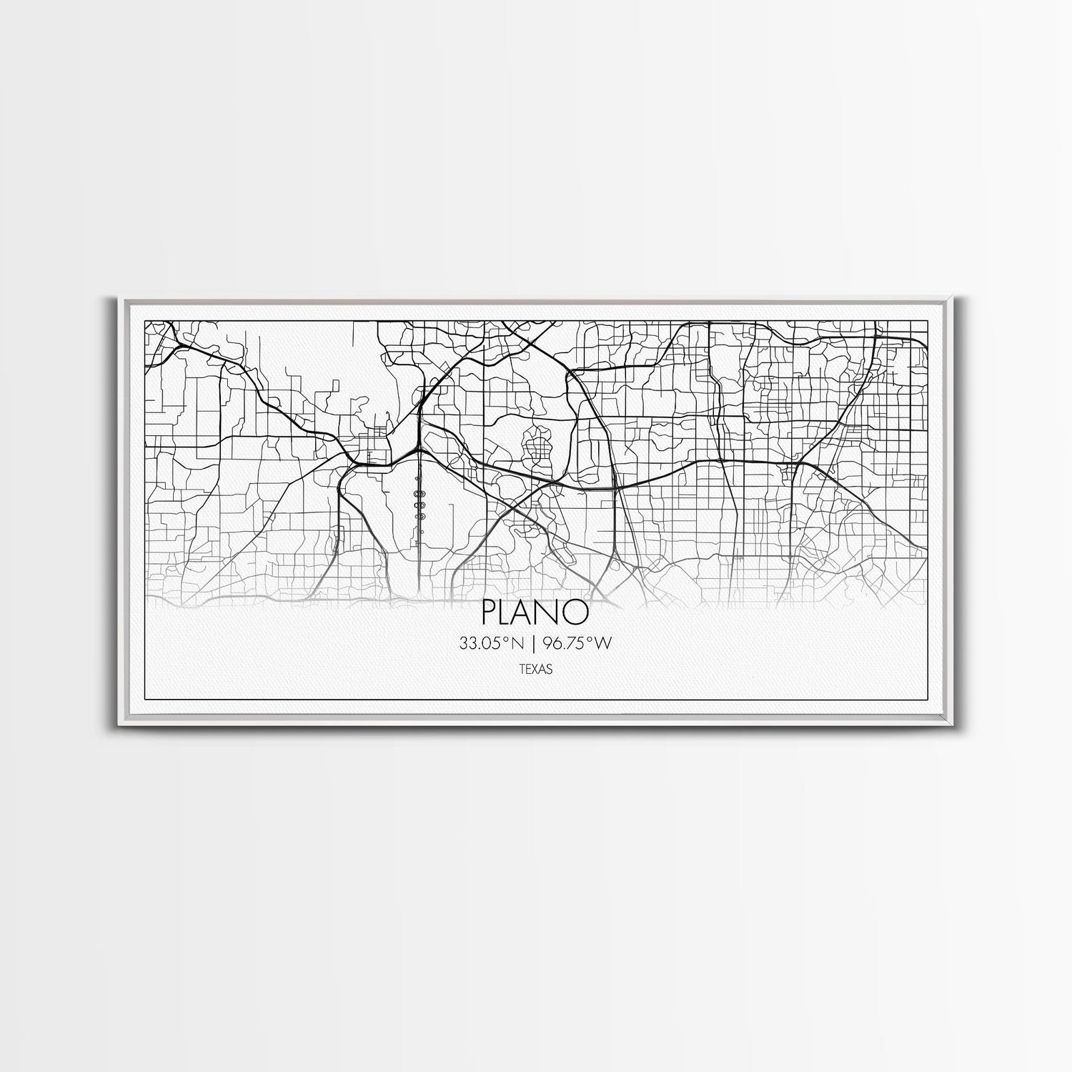 Plano City Map, Texas Art, Map Print, Minimalist Wall Art, Wall Art, Canvas Art, Marketing Gifts, Dorm Wall Art, Cabin Wall Art, Panoramic - 10x20 Inches / No Frame - Stretched Canvas Only is backordered and will ship as soon as it is back in stock.