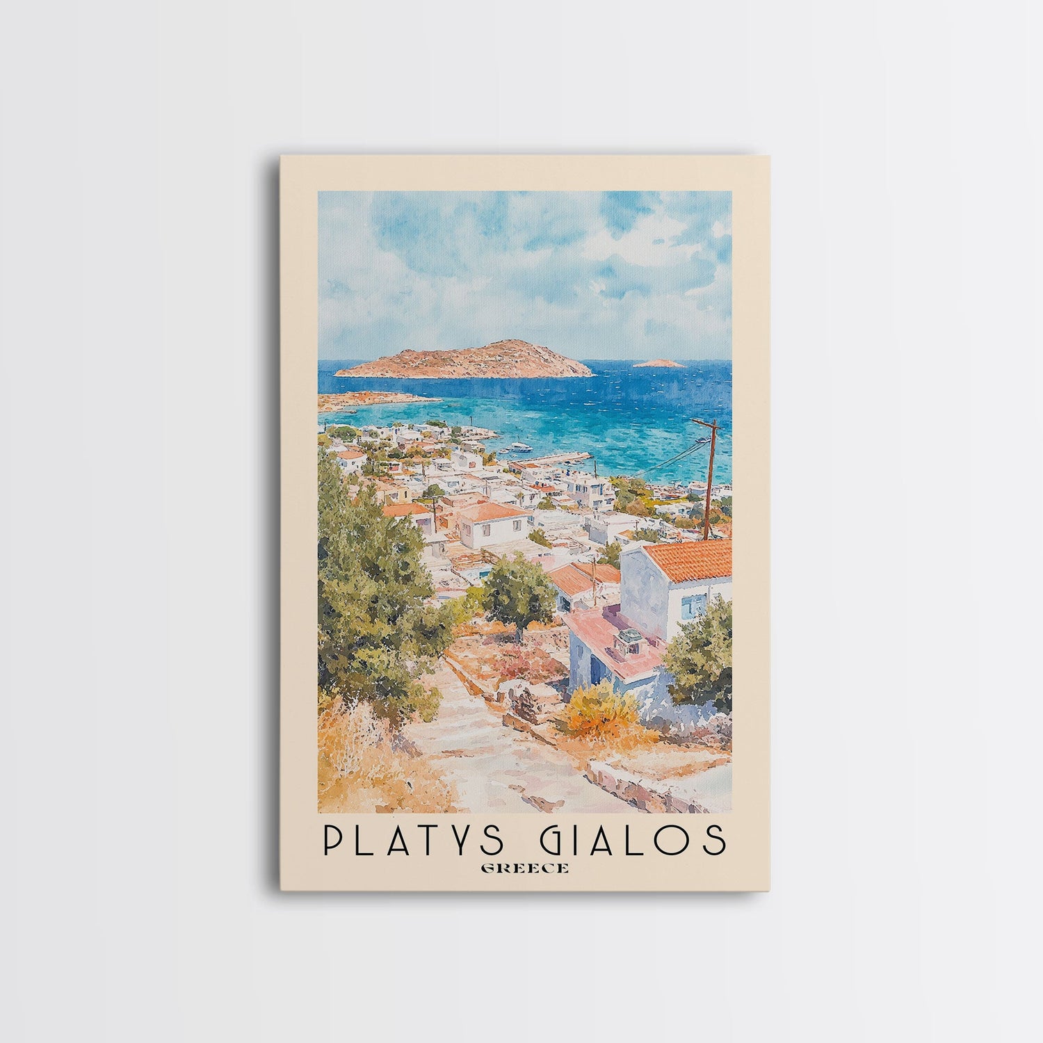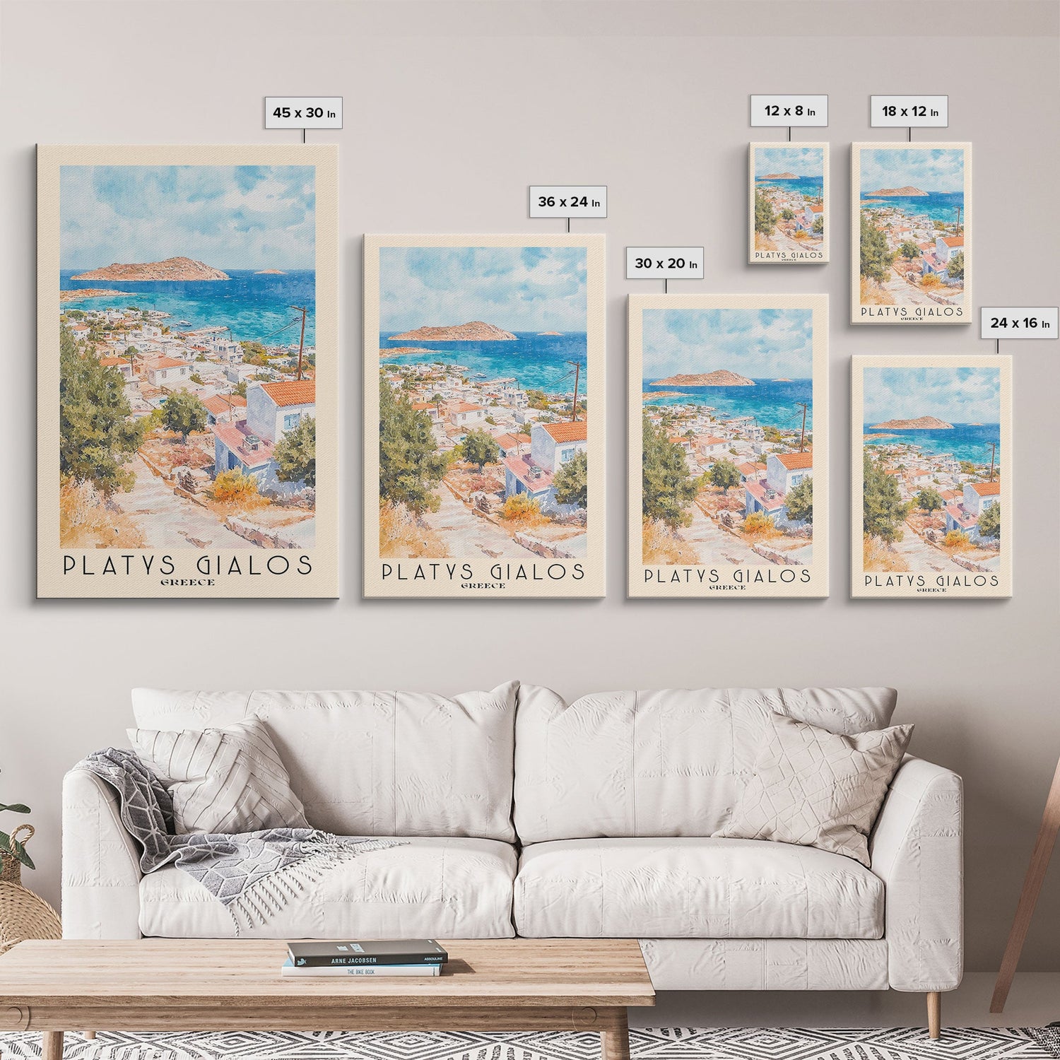 Platys Gialos, Greece Watercolor Beach Print, Vacation Gift, Greece Wall Art, Framed Canvas Print, Framed Beach Painting