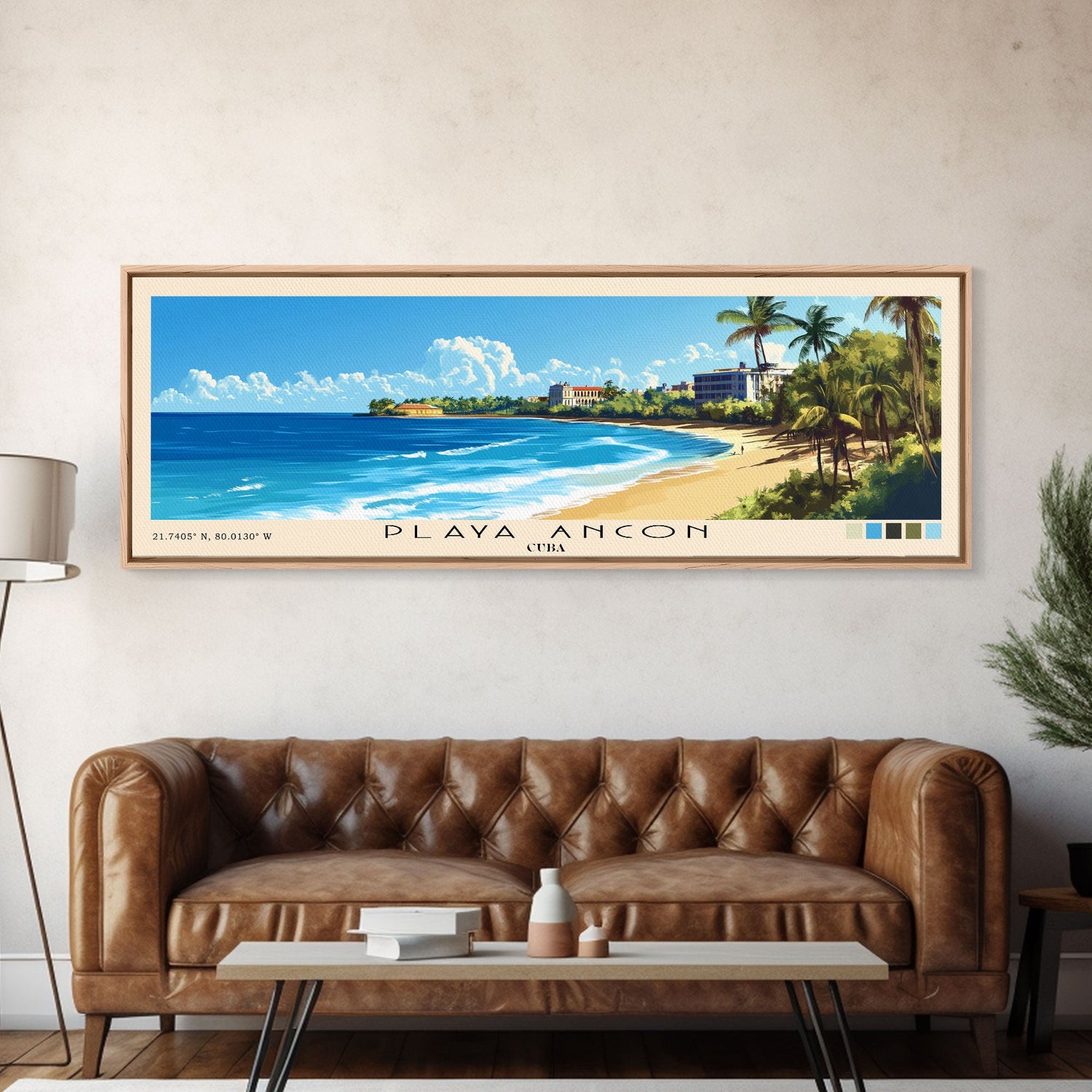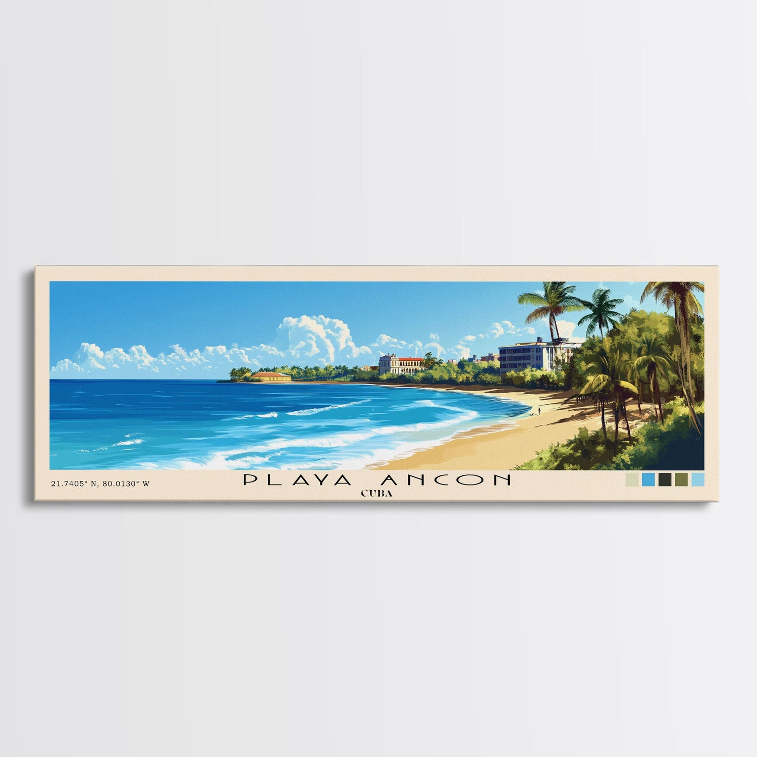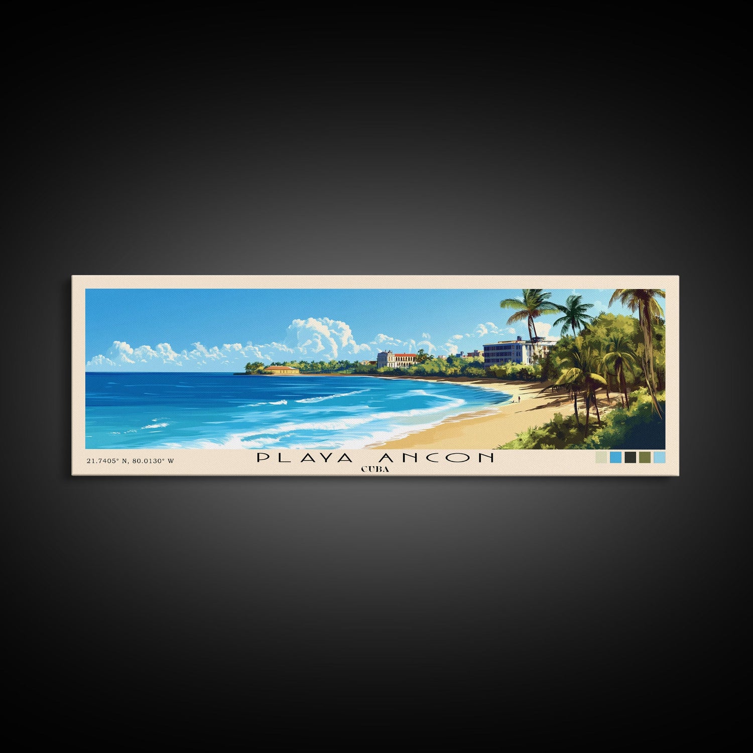Playa Ancon, Cuba Panoramic Beach Print, Vacation Gift, Cuba Wall Art, Framed Canvas Print, Framed Beach Painting
