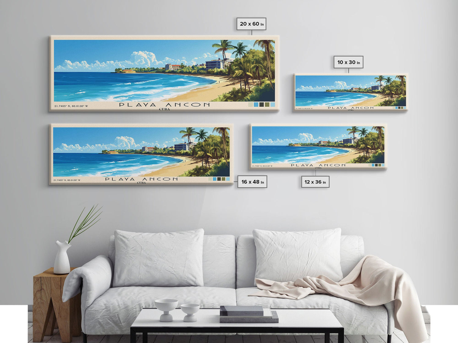 Playa Ancon, Cuba Panoramic Beach Print, Vacation Gift, Cuba Wall Art, Framed Canvas Print, Framed Beach Painting - 10x30 Inches / No Frame - Stretched Canvas Only is backordered and will ship as soon as it is back in stock.