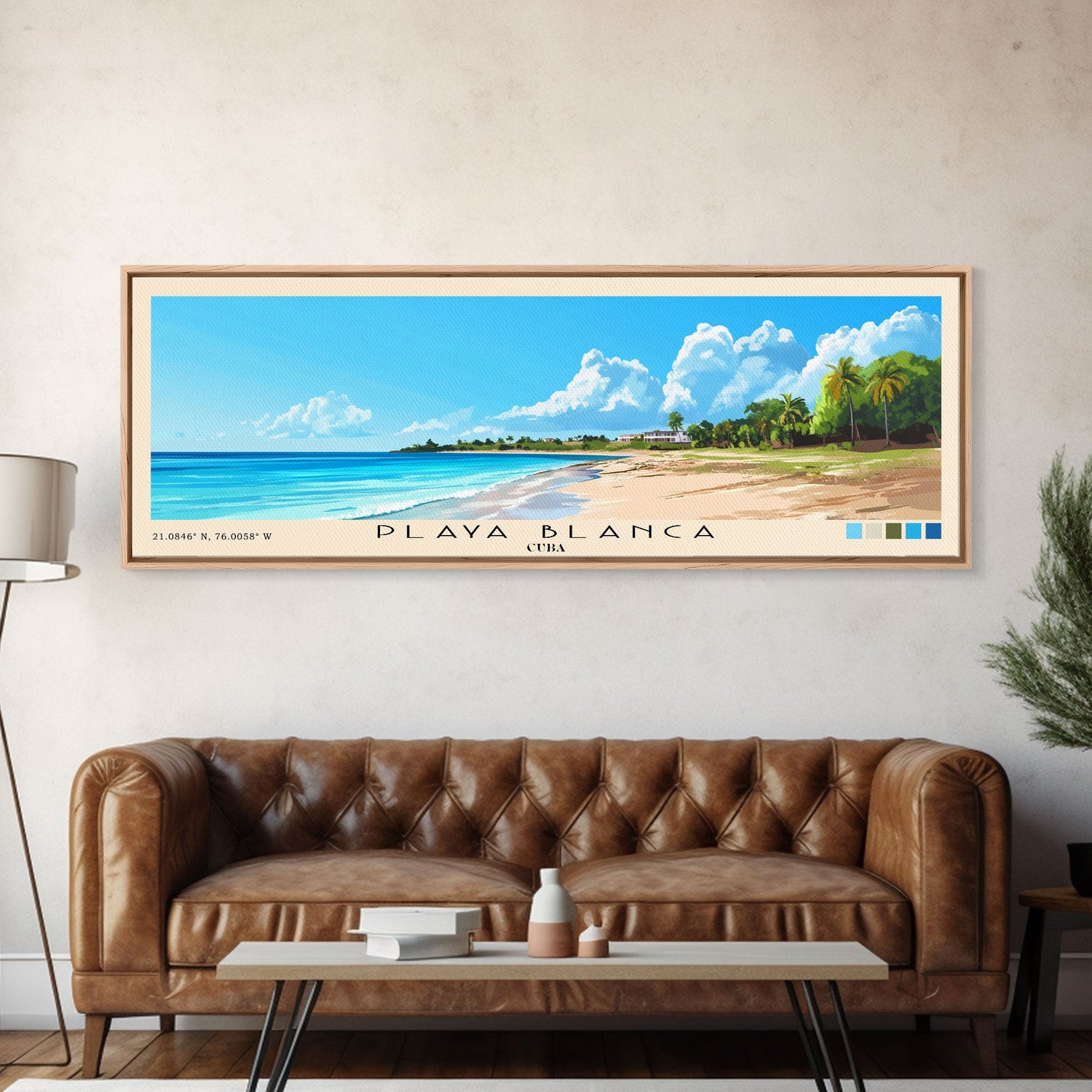 Playa Blanca, Cuba Panoramic Print, Vacation Gift, Cuba Wall Art, Beach Painting, Beach Decor, Large Wall Art, Wood Frame Art