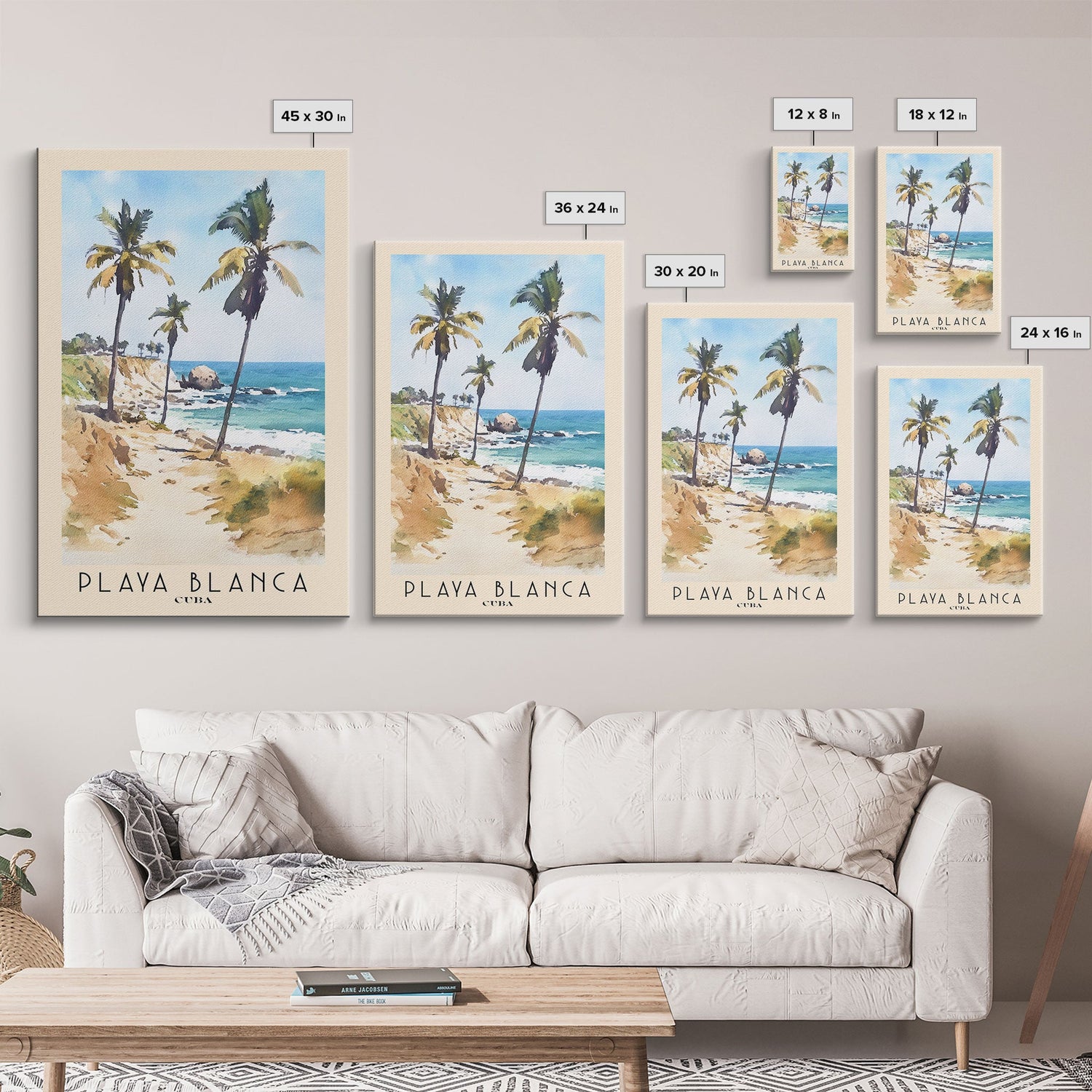 Playa Blanca, Cuba Watercolor Beach Print, Vacation Gift, Cuba Wall Art, Framed Canvas Print, Framed Beach Painting
