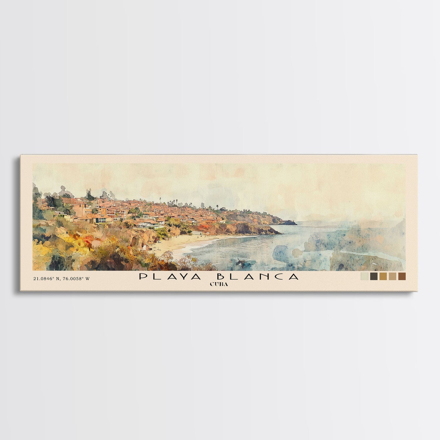 Playa Blanca, Cuba Watercolor Beach Print, Vacation Gift, Cuba Wall Art, Framed Canvas Print, Framed Beach Painting - 10x30 Inches / No Frame - Stretched Canvas Only is backordered and will ship as soon as it is back in stock.
