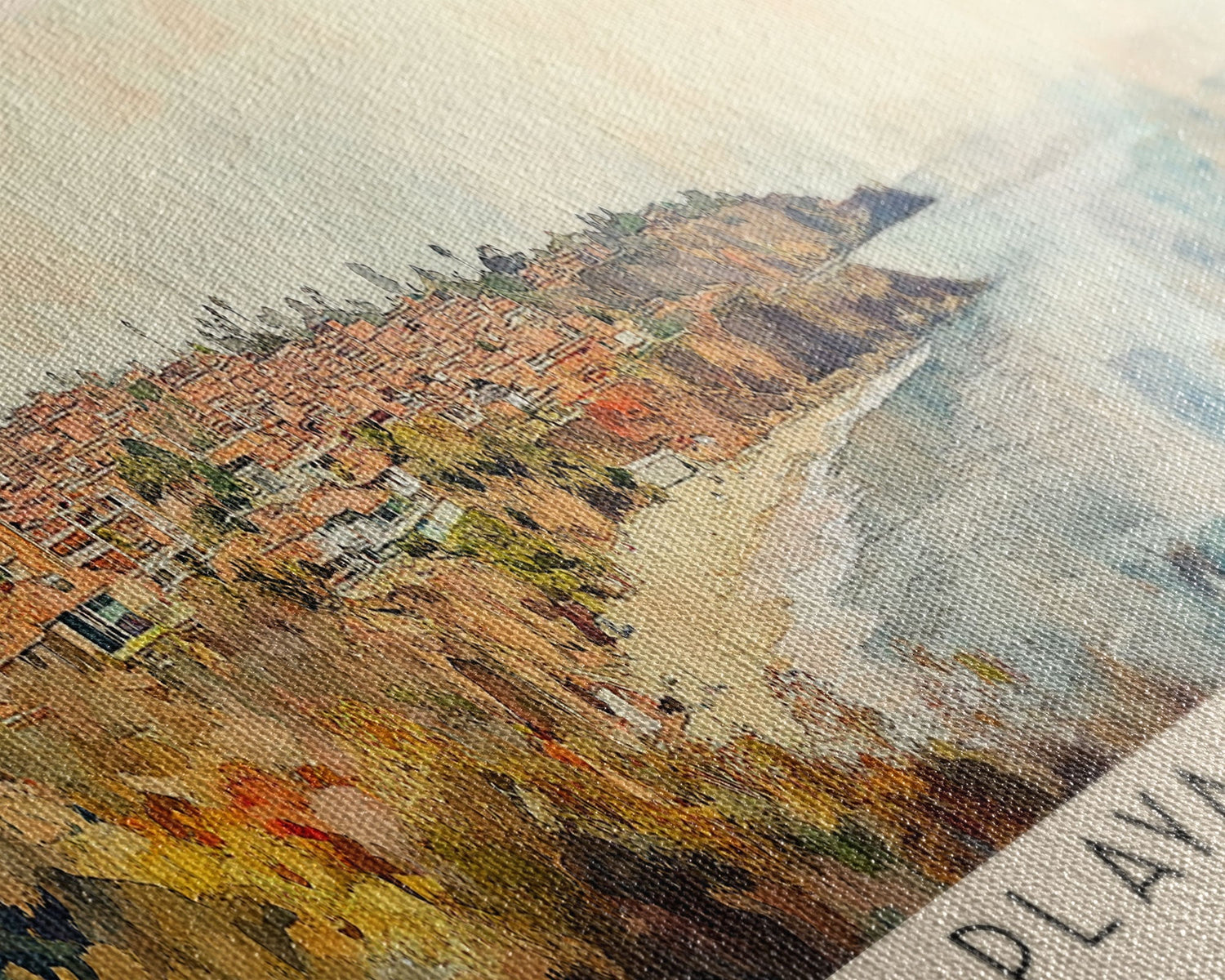 Most of our canvases are made in the USA, with the exception of canvases ordered with the light oak unstained frames, and any large canvases (24x48, 30x60, 16x48 and 20x60) ordered WITH a frame. These are temporarily made in and shipped from Europe, while we try to find a more consistent supplier in the USA.