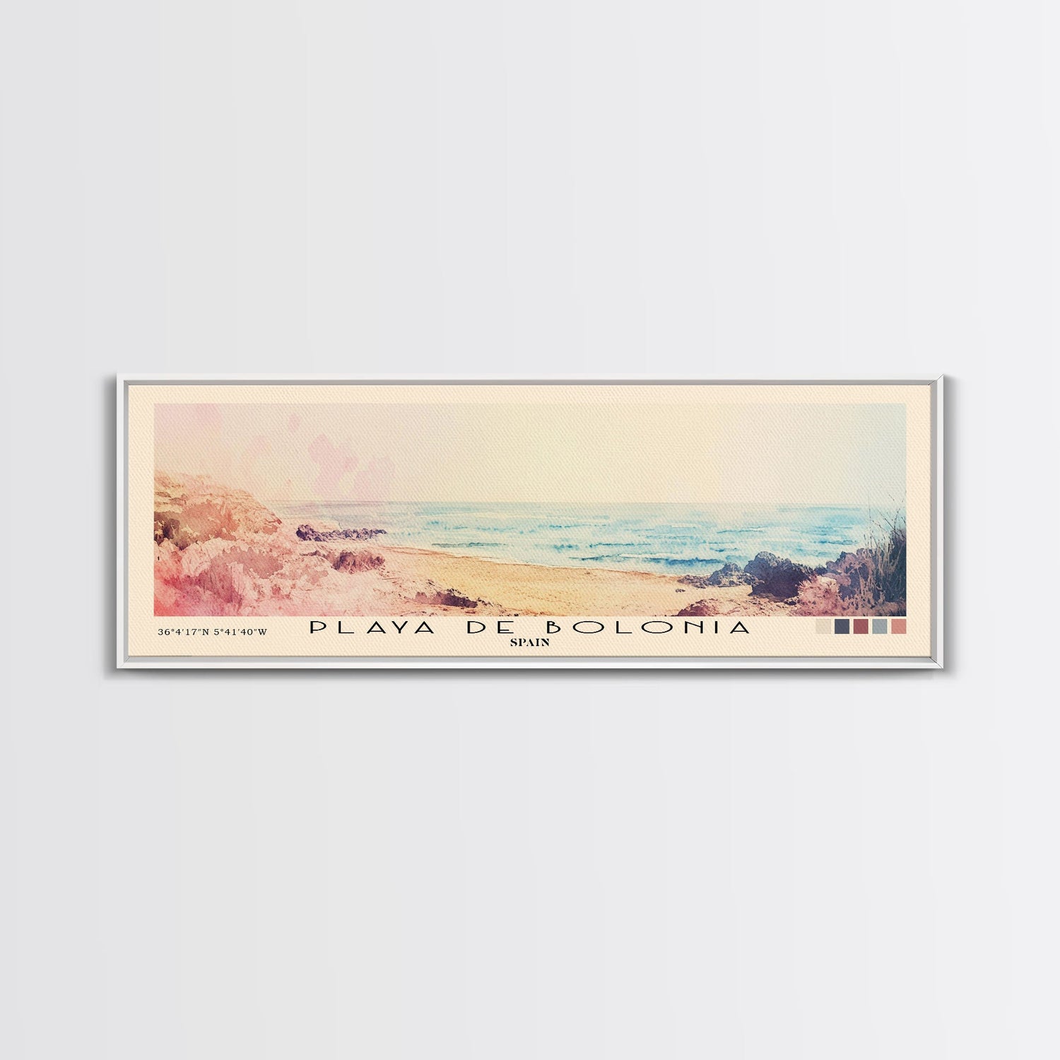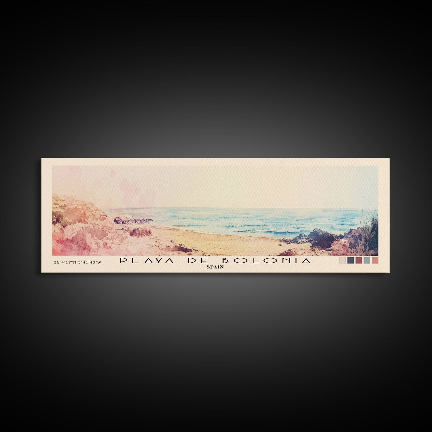 Playa de Bolonia, Spain Watercolor Beach Print, Vacation Gift, Spain Wall Art, Beach Painting, Beach Decor, Beach Painting - 10x30 Inches / No Frame - Stretched Canvas Only is backordered and will ship as soon as it is back in stock.