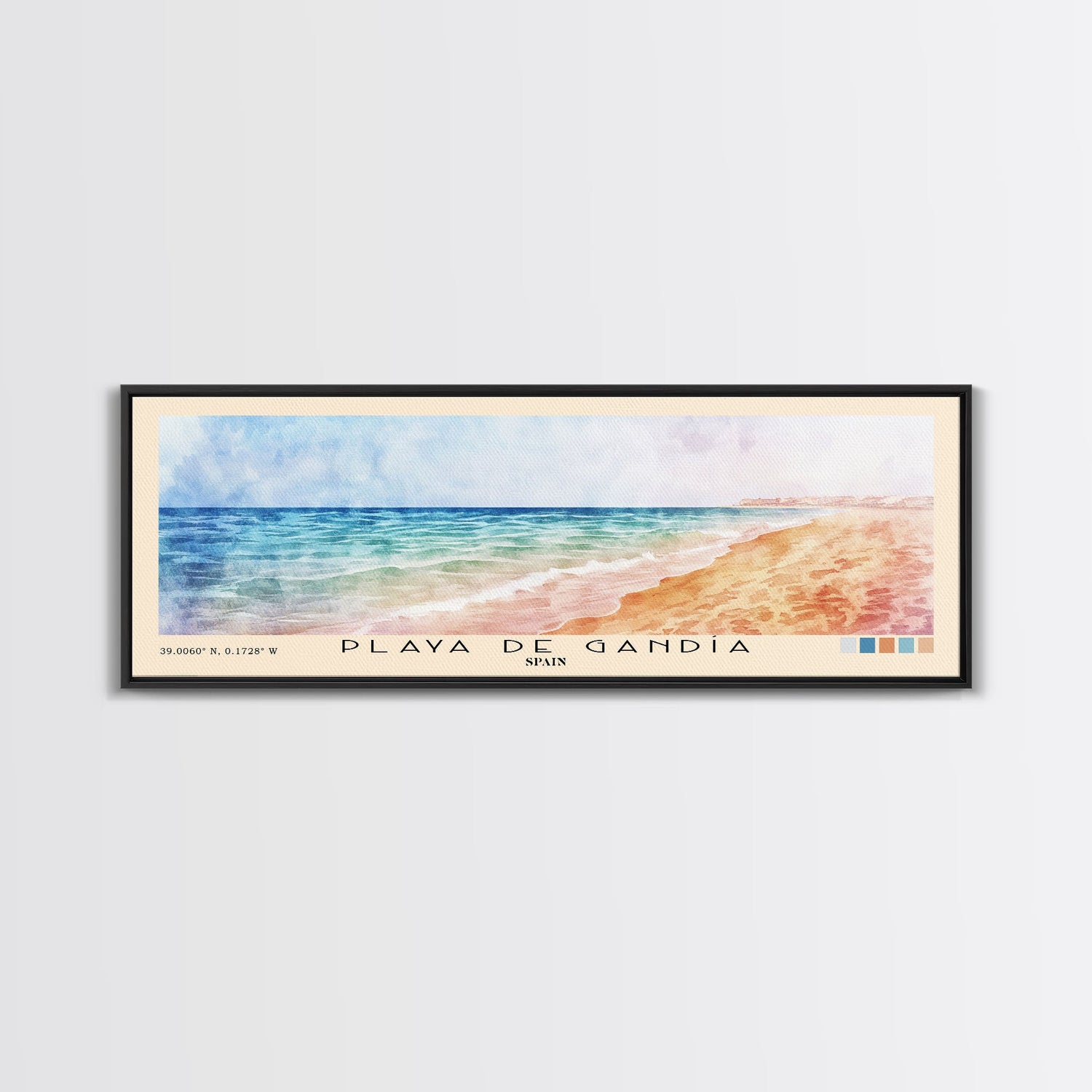 Playa de Gandía, Spain Watercolor Beach Print, Vacation Gift, Spain Wall Art, Framed Canvas Print, Framed Beach Painting - 10x30 Inches / No Frame - Stretched Canvas Only is backordered and will ship as soon as it is back in stock.