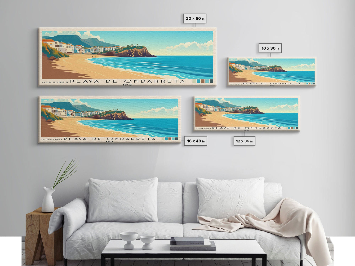 Playa de Ondarreta, Spain Panoramic Print, Vacation Gift, Spain Wall Art, Vacation Wall Art, Vacatation Memories, Beach Decor, Beach Or Lakehouse Art - 10x30 Inches / No Frame - Stretched Canvas Only is backordered and will ship as soon as it is back in stock.