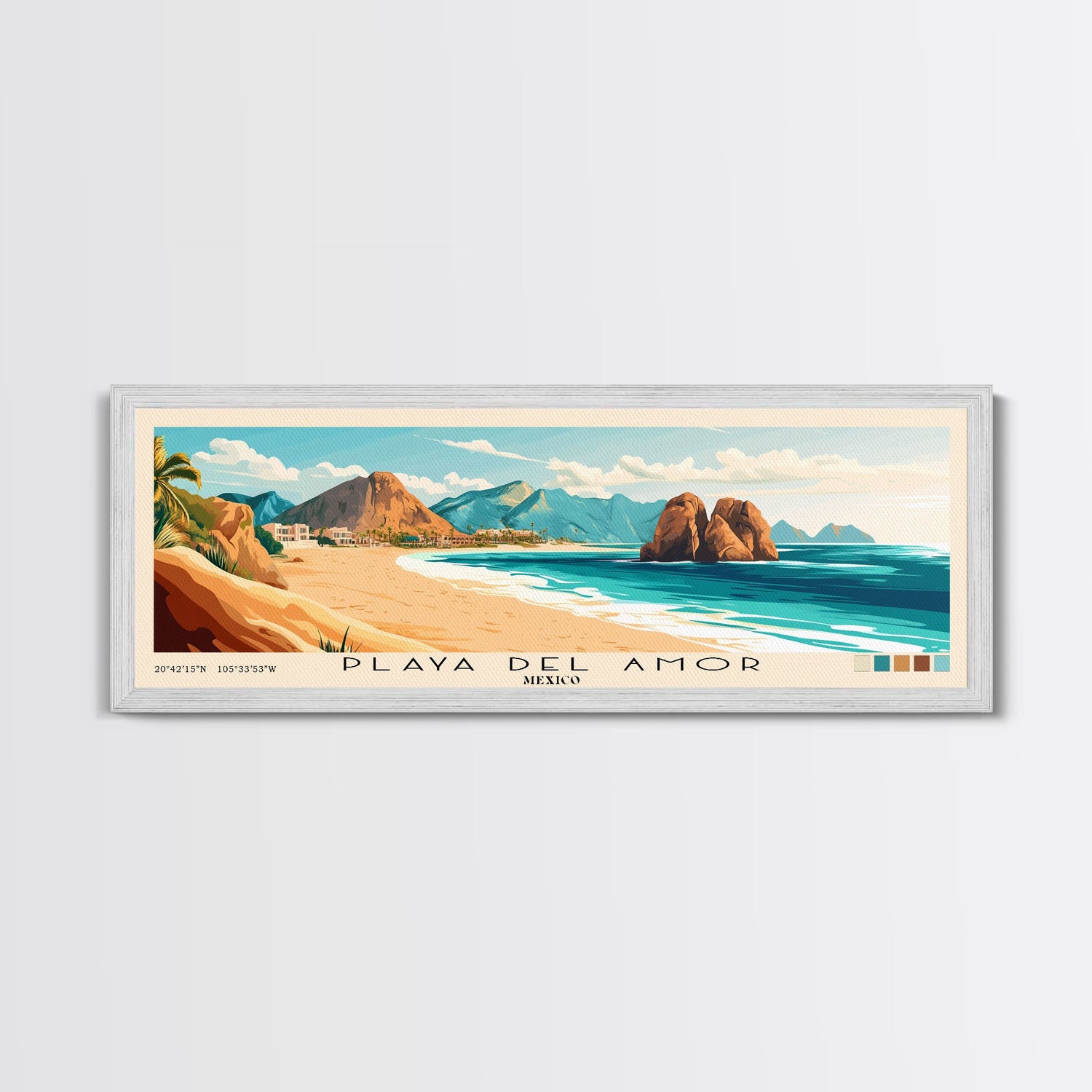 Playa del Amor, Mexico Panoramic Beach Print, Vacation Gift, Mexico Wall Art, Beach Painting, Beach Decor, Beach Painting - 10x30 Inches / No Frame - Stretched Canvas Only is backordered and will ship as soon as it is back in stock.