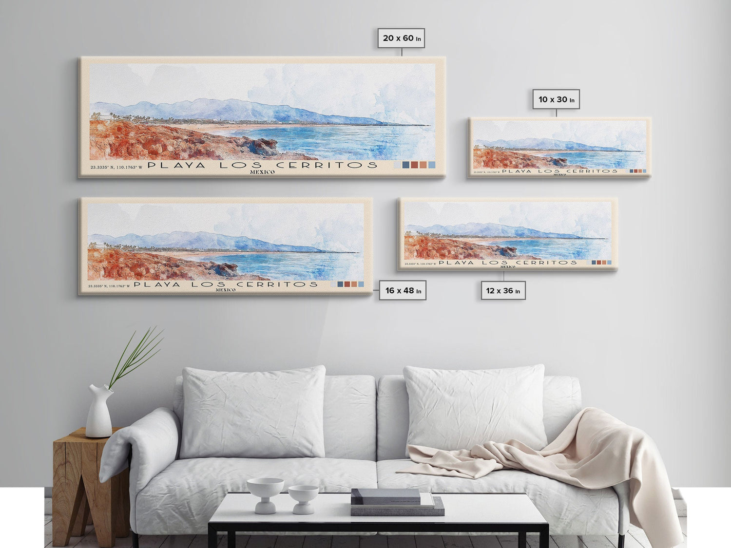 Playa Los Cerritos, Mexico Watercolor Beach Print, Vacation Gift, Mexico Wall Art, Beach Painting, Beach Decor, Beach Painting - 10x30 Inches / No Frame - Stretched Canvas Only is backordered and will ship as soon as it is back in stock.