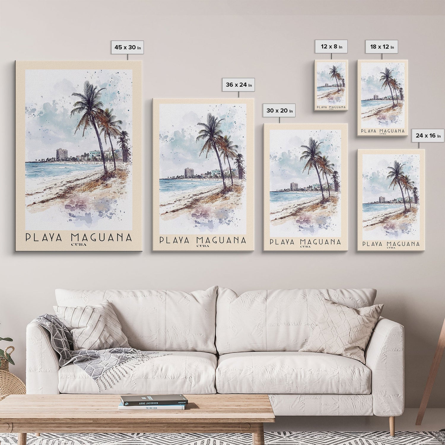 Playa Maguana, Cuba Watercolor Beach Print, Vacation Gift, Cuba Wall Art, Framed Canvas Print, Framed Beach Painting