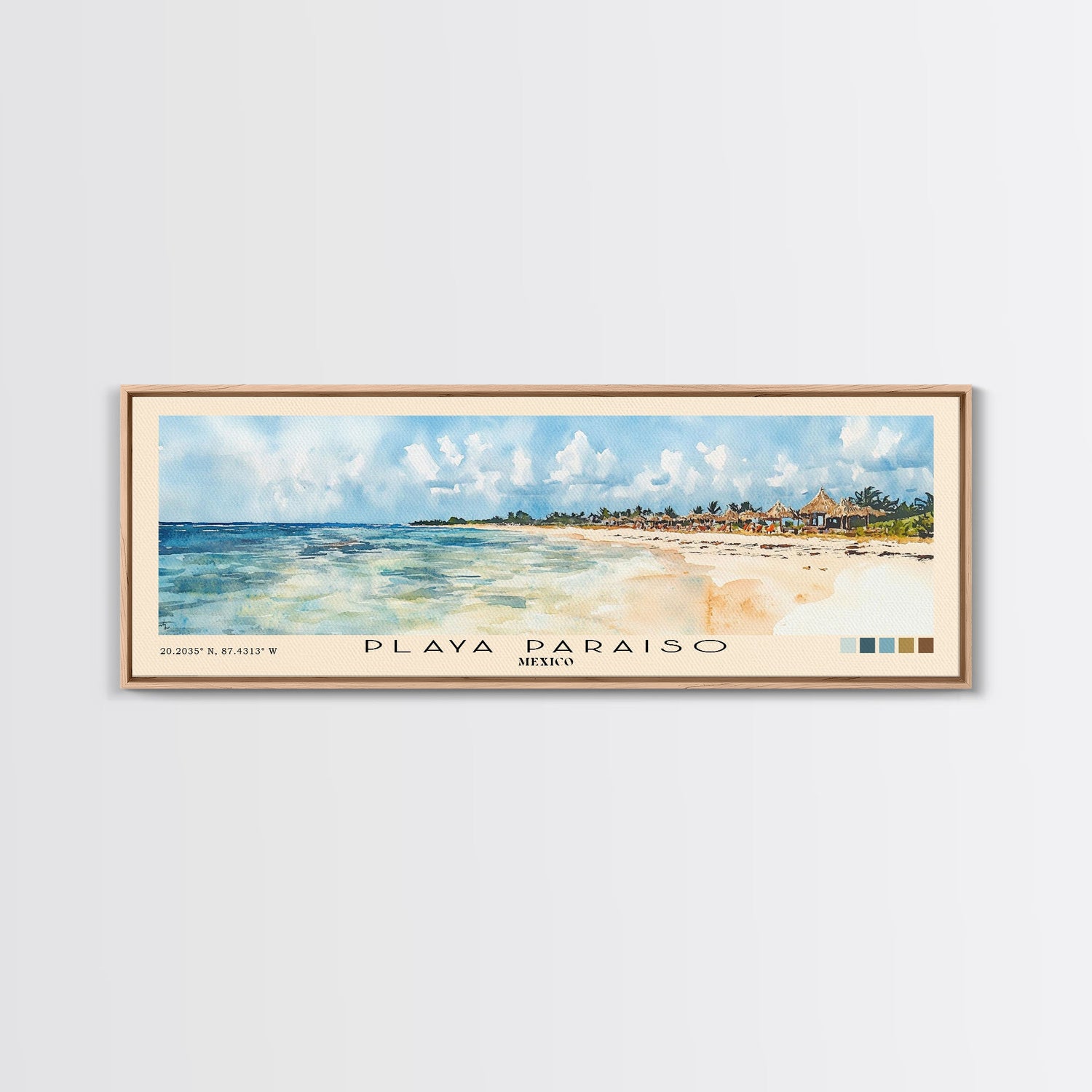 Playa Paraiso, Mexico Watercolor Beach Print, Vacation Gift, Mexico Wall Art, Beach Painting, Beach Decor, Beach Painting - 10x30 Inches / Gallery Wrap Canvas - Ready To Hang is backordered and will ship as soon as it is back in stock.