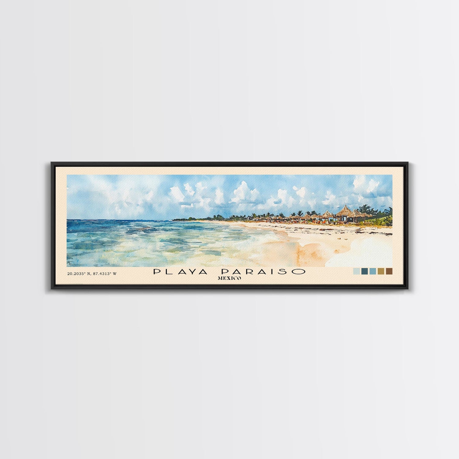 Playa Paraiso, Mexico Watercolor Beach Print, Vacation Gift, Mexico Wall Art, Beach Painting, Beach Decor, Beach Painting - 10x30 Inches / No Frame - Stretched Canvas Only is backordered and will ship as soon as it is back in stock.