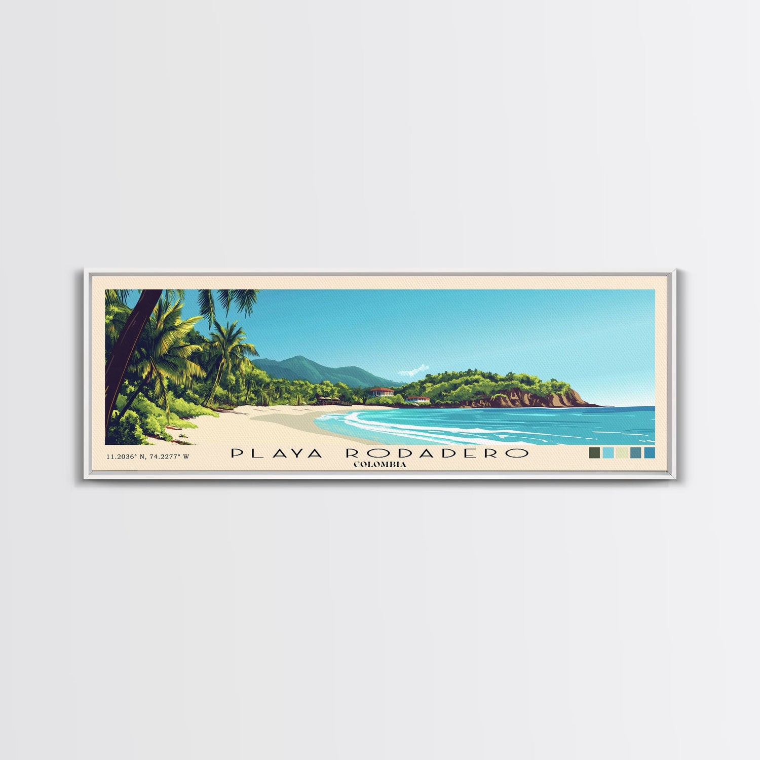 Playa Rodadero, Colombia Panoramic Beach Print, Vacation Gift, Colombia Wall Art, Framed Canvas Print, Framed Beach Painting