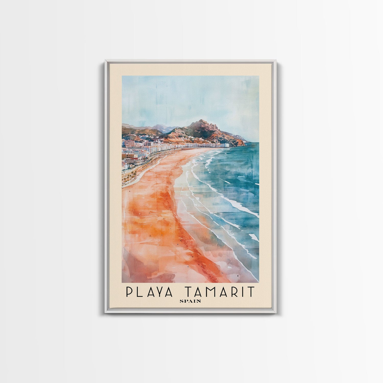 Playa Tamarit, Spain Watercolor Print, Vacation Gift, Spain Wall Art, Beach Painting, Beach Decor, Large Wall Art, Wood Frame Art