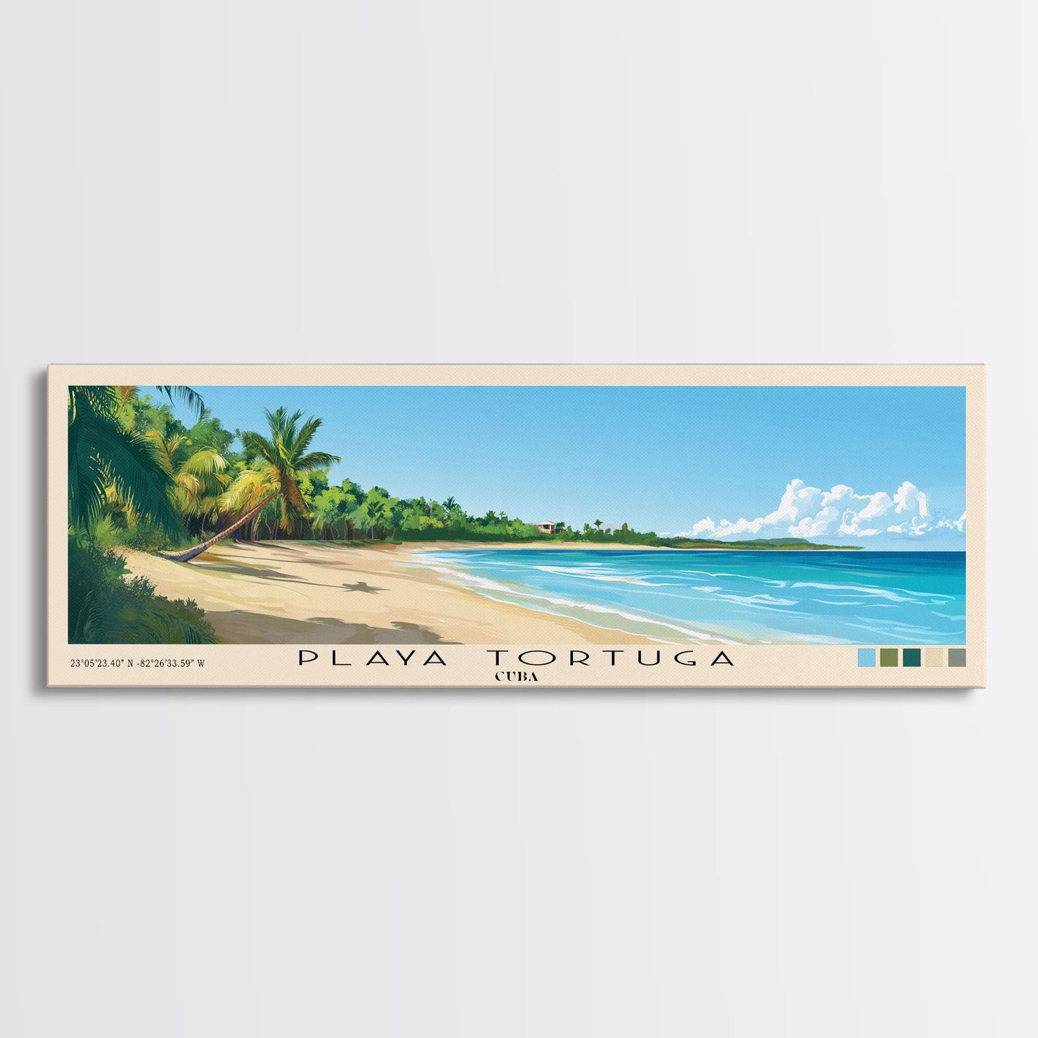 Playa Tortuga, Cuba Panoramic Beach Print, Vacation Gift, Cuba Wall Art, Beach Painting, Beach Decor, Beach Painting - 10x30 Inches / No Frame - Stretched Canvas Only is backordered and will ship as soon as it is back in stock.
