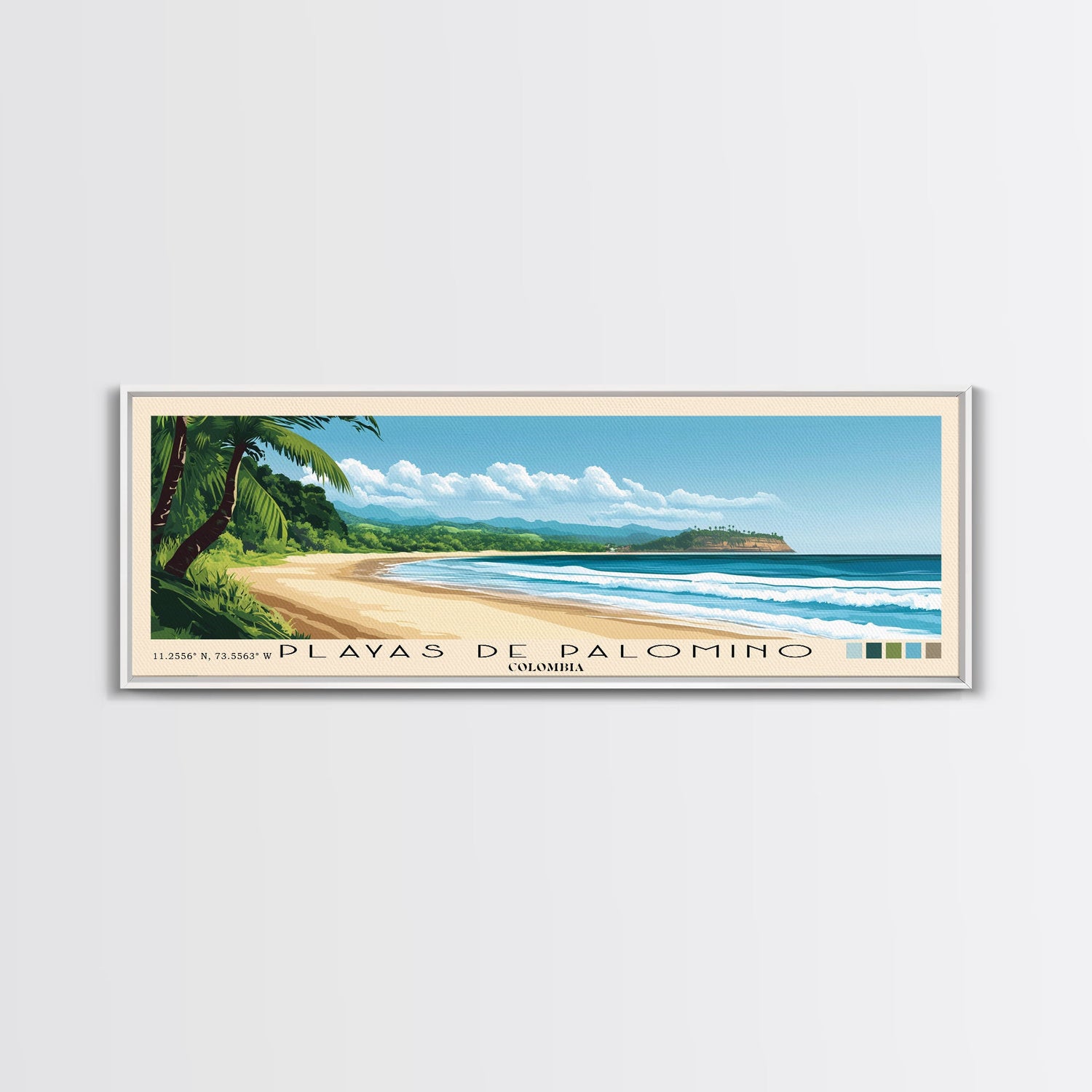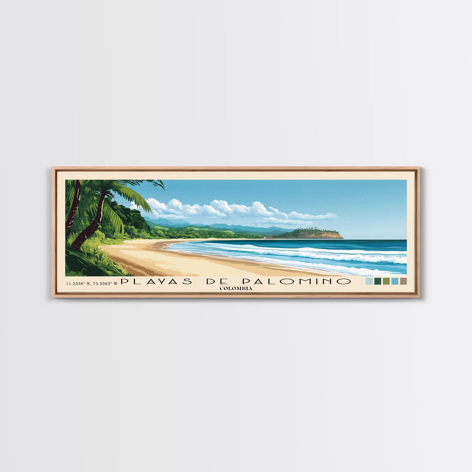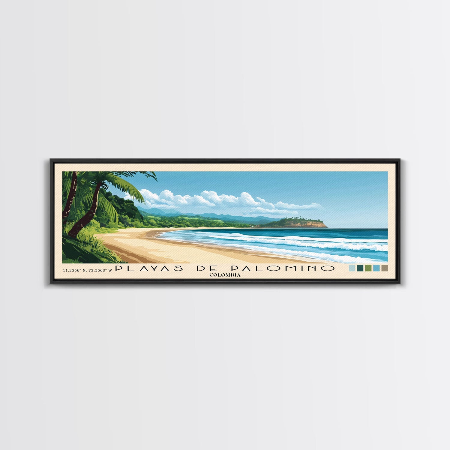 Playas de Palomino, Colombia Panoramic Beach Print, Vacation Gift, Colombia Wall Art, Framed Canvas Print, Framed Beach Painting
