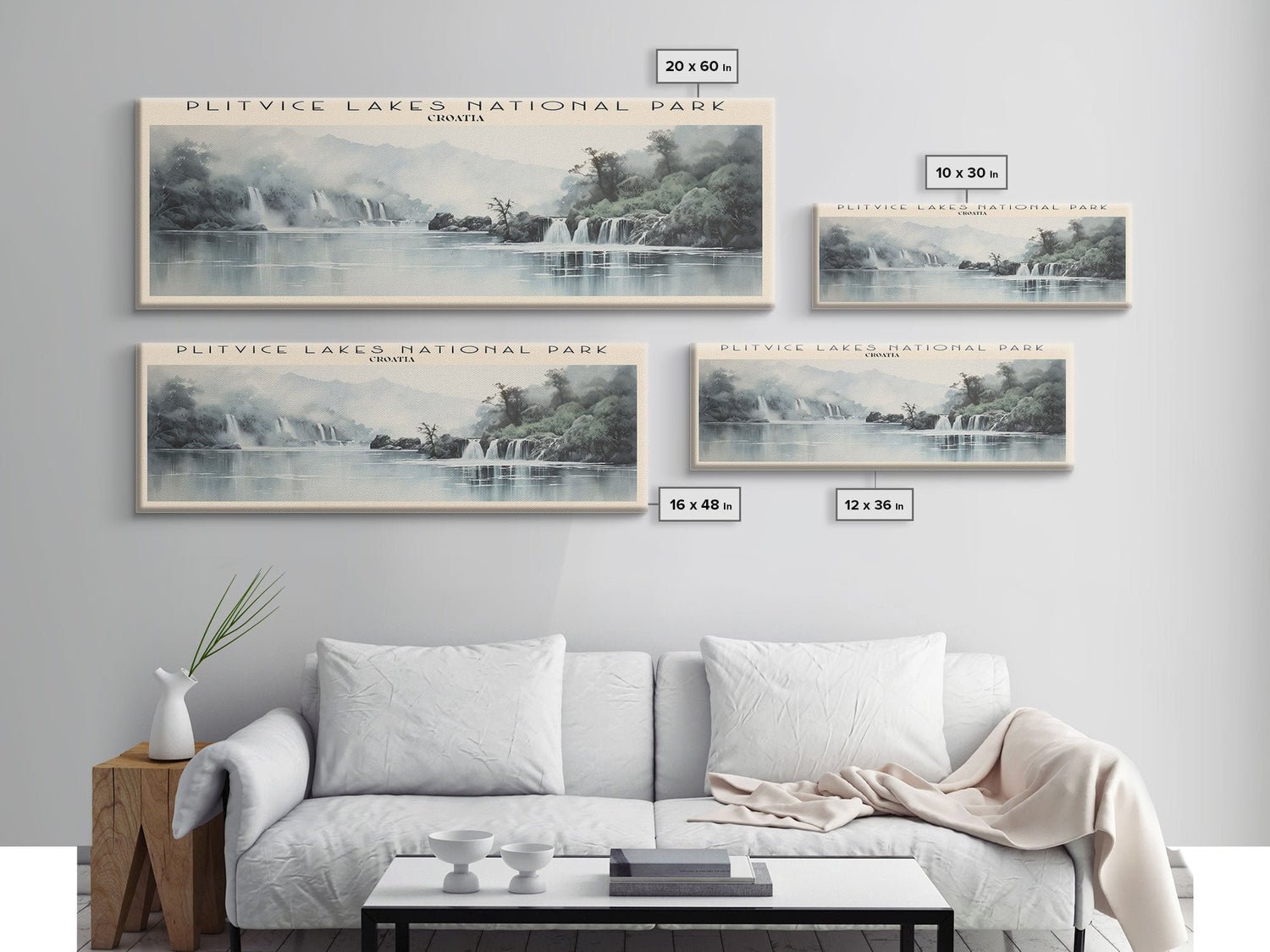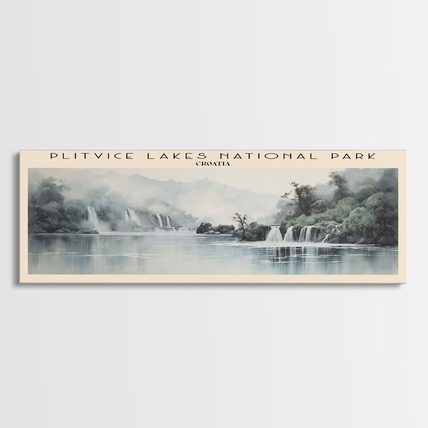 Plitvice Lakes National Park Travel Print Wall Art, Travel Poster Print, Retro Style COUNTRY Home Decor, Wall Hanging, Travel Gift Idea, Unique Metal Art - 10x30 Inches / No Frame - Stretched Canvas Only is backordered and will ship as soon as it is back in stock.