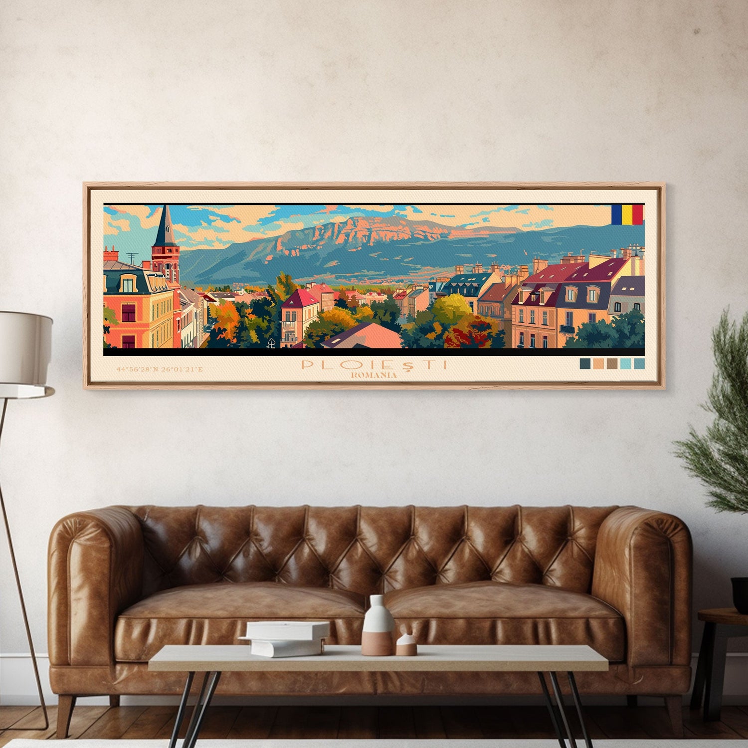 Ploiesti Romania Travel Print Wall Art, Panoramic City Art, Travel Art, Wall Decor, Vacation Gift, Framed Canvas Print Or Metal Art
