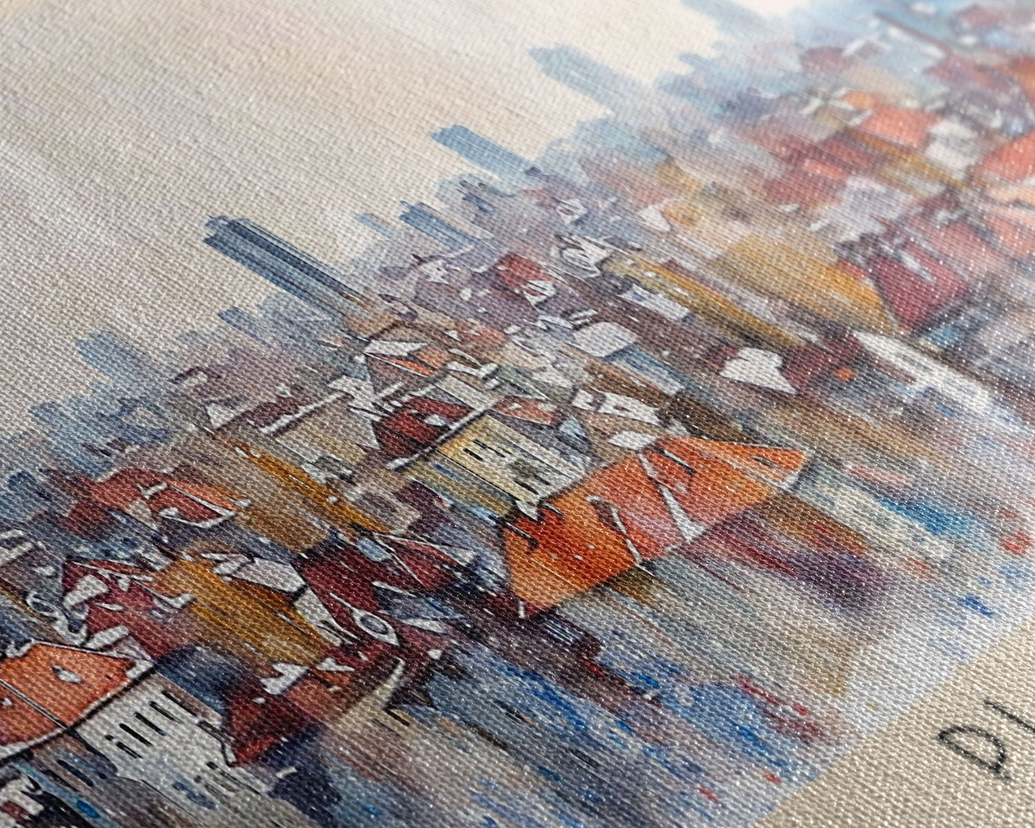 Most of our canvases are made in the USA, with the exception of canvases ordered with the light oak unstained frames, and any large canvases (24x48, 30x60, 16x48 and 20x60) ordered WITH a frame. These are temporarily made in and shipped from Europe, while we try to find a more consistent supplier in the USA.