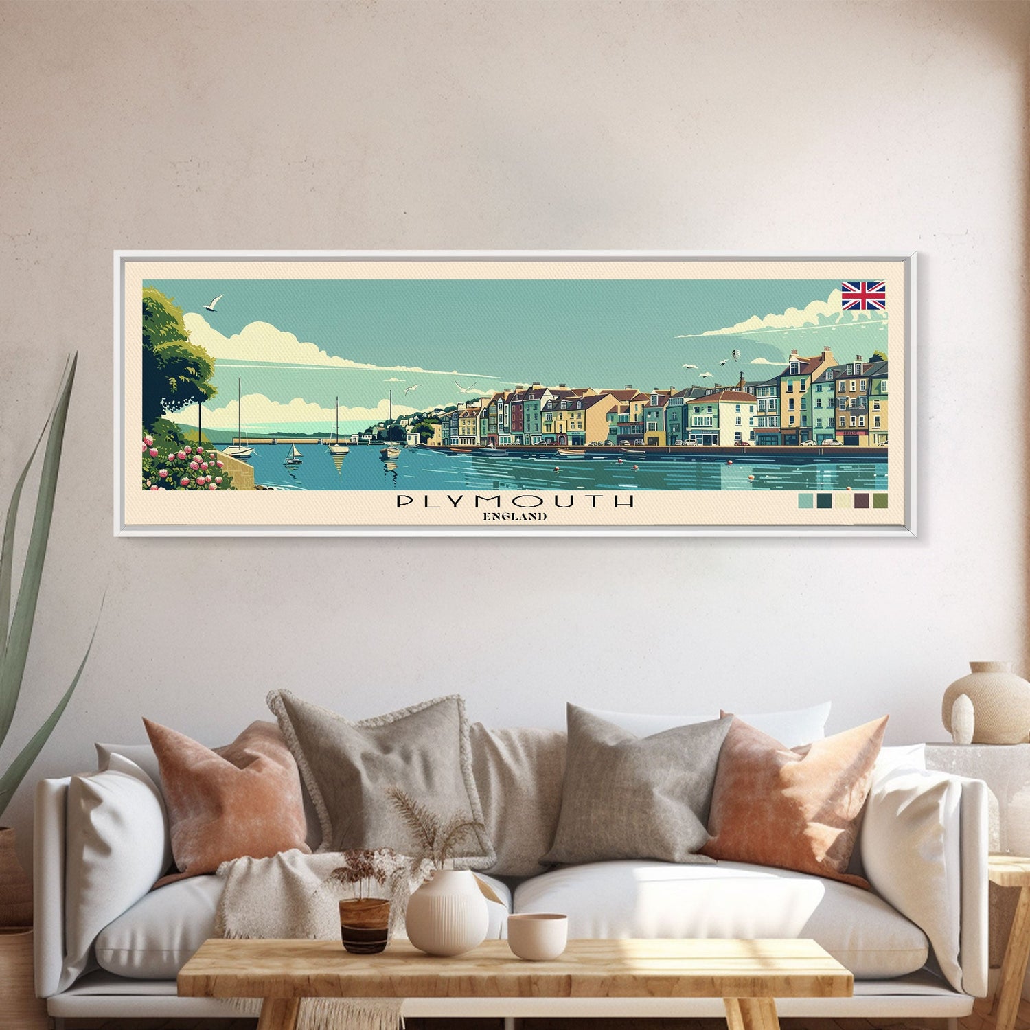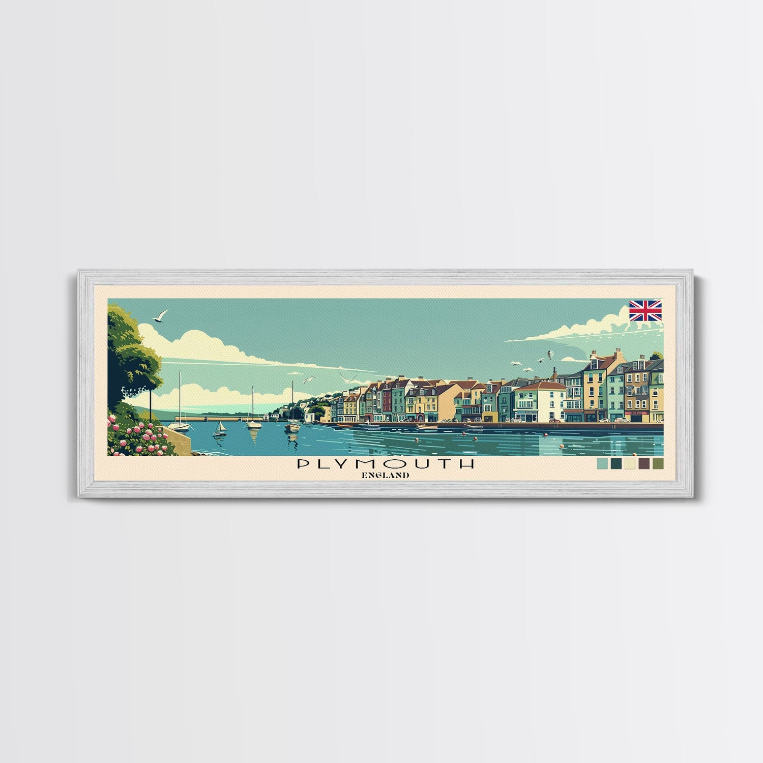 Plymouth, England Panoramic Canvas Print, Plymouth, England Painting, England Art, Plymouth Travel Poster, Travel Art, Guest Room Painting