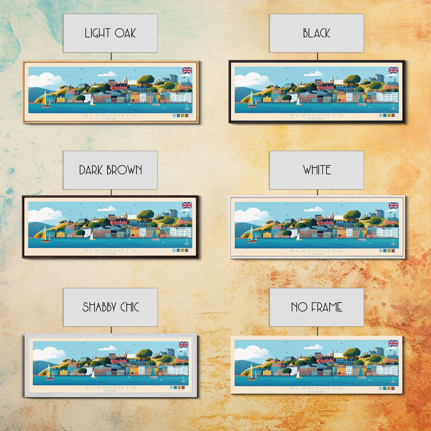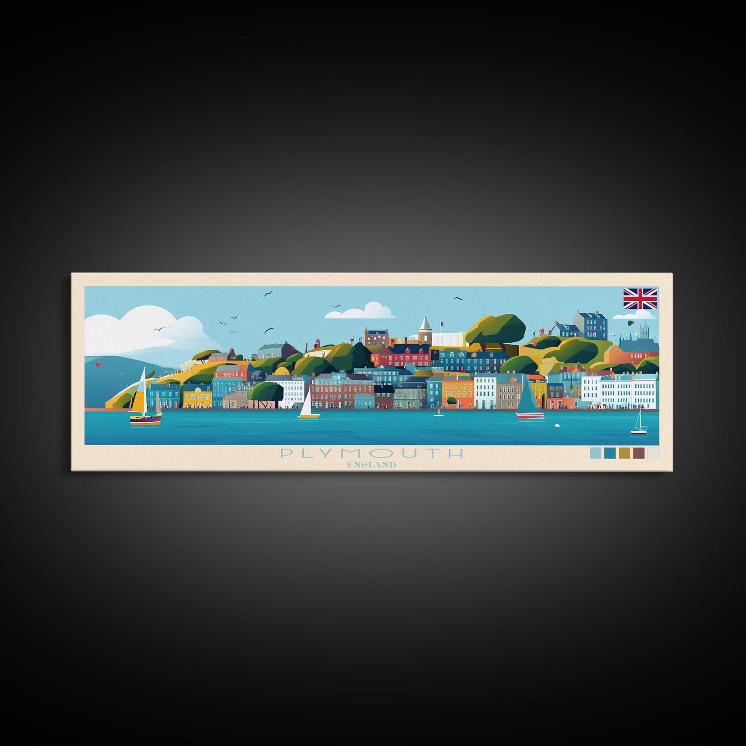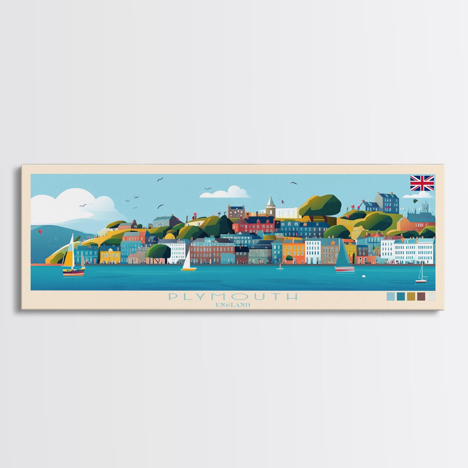 Plymouth, England Panoramic Travel Poster Canvas Print, Plymouth, England Painting, England Art, Plymouth Travel Art, Guest Room Painting