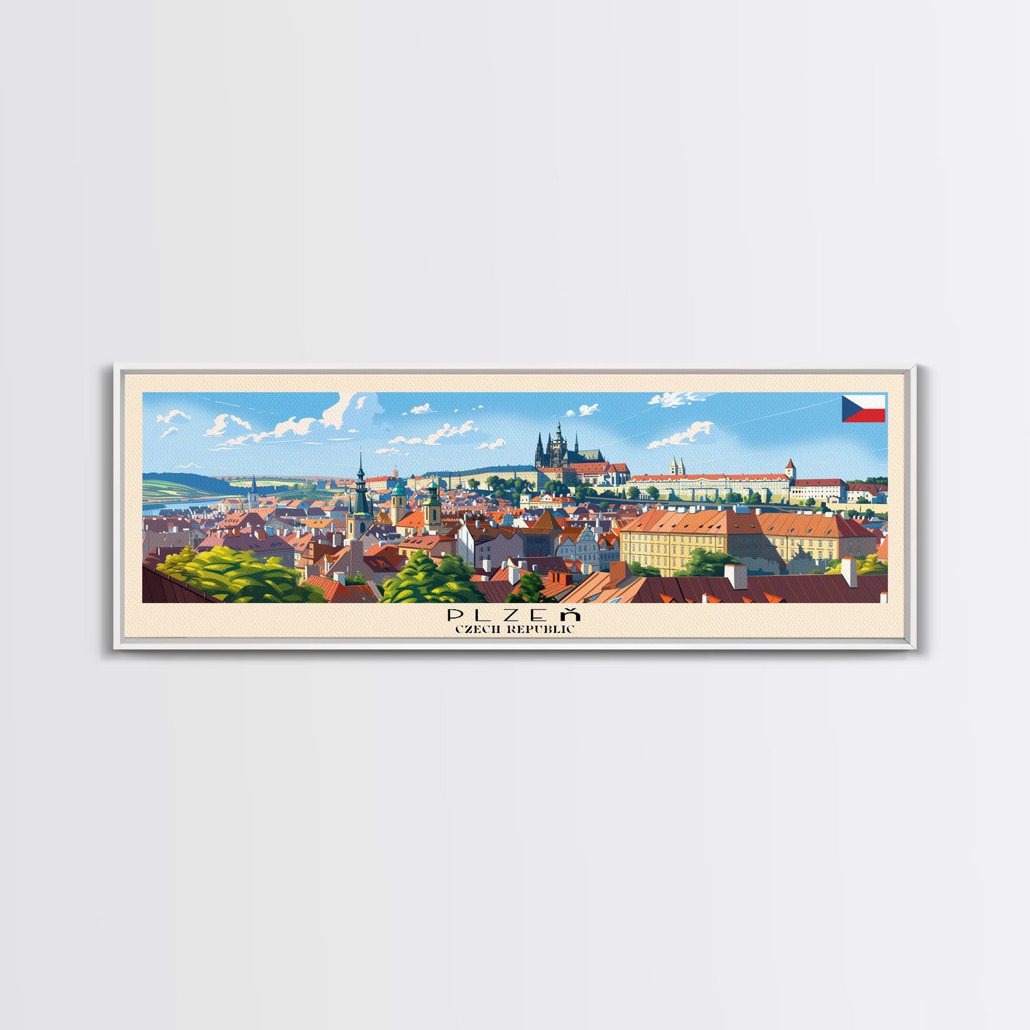 Plzen Czech Republic Wall Art, Panoramic Travel Poster, Panoramic Framed Canvas Print, City Wall Art, Wall Hanging Home Decor, Travel Art