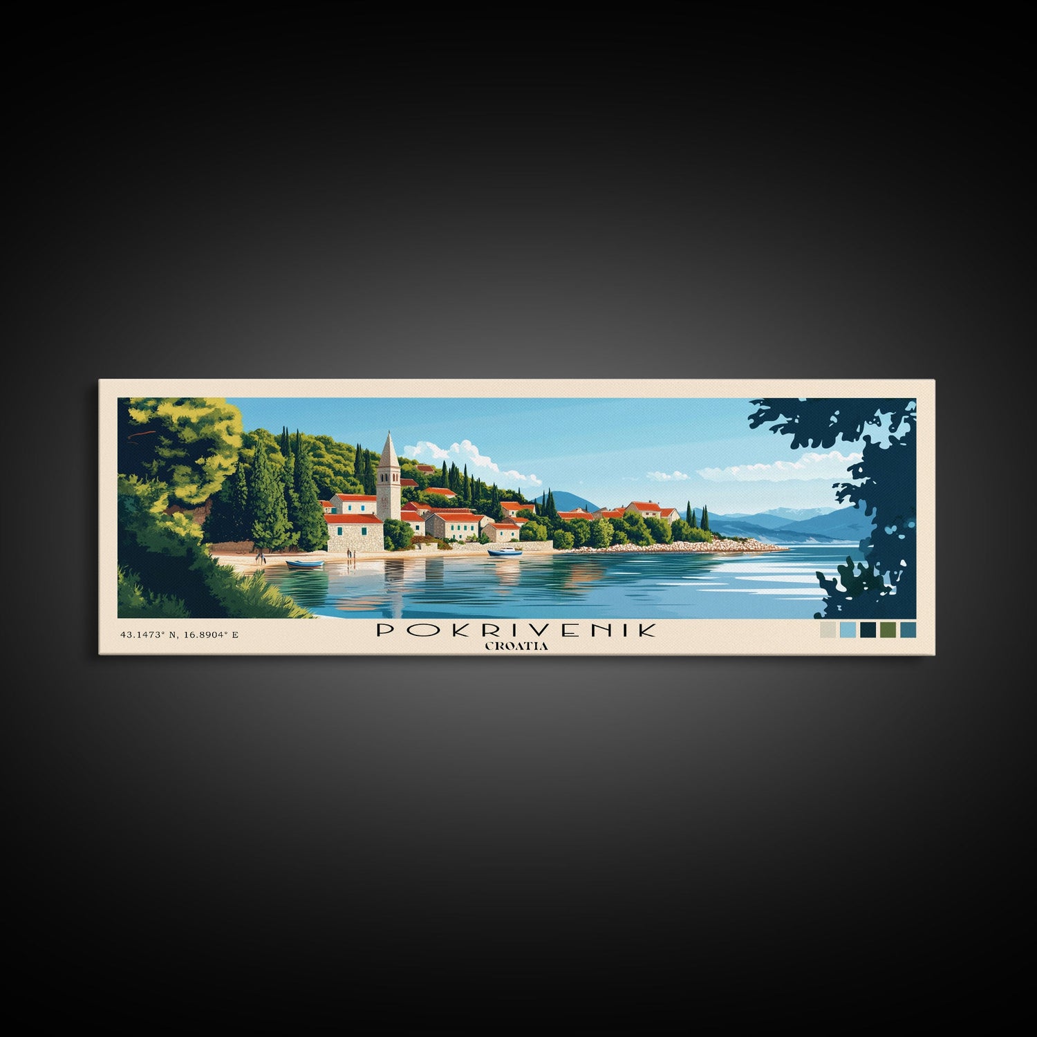 Pokrivenik, Croatia Panoramic Print, Vacation Gift, Croatia Wall Art, Beach Painting, Beach Decor, Beach Or Lakehouse Art - 10x30 Inches / No Frame - Stretched Canvas Only is backordered and will ship as soon as it is back in stock.