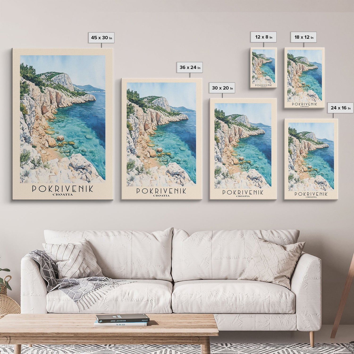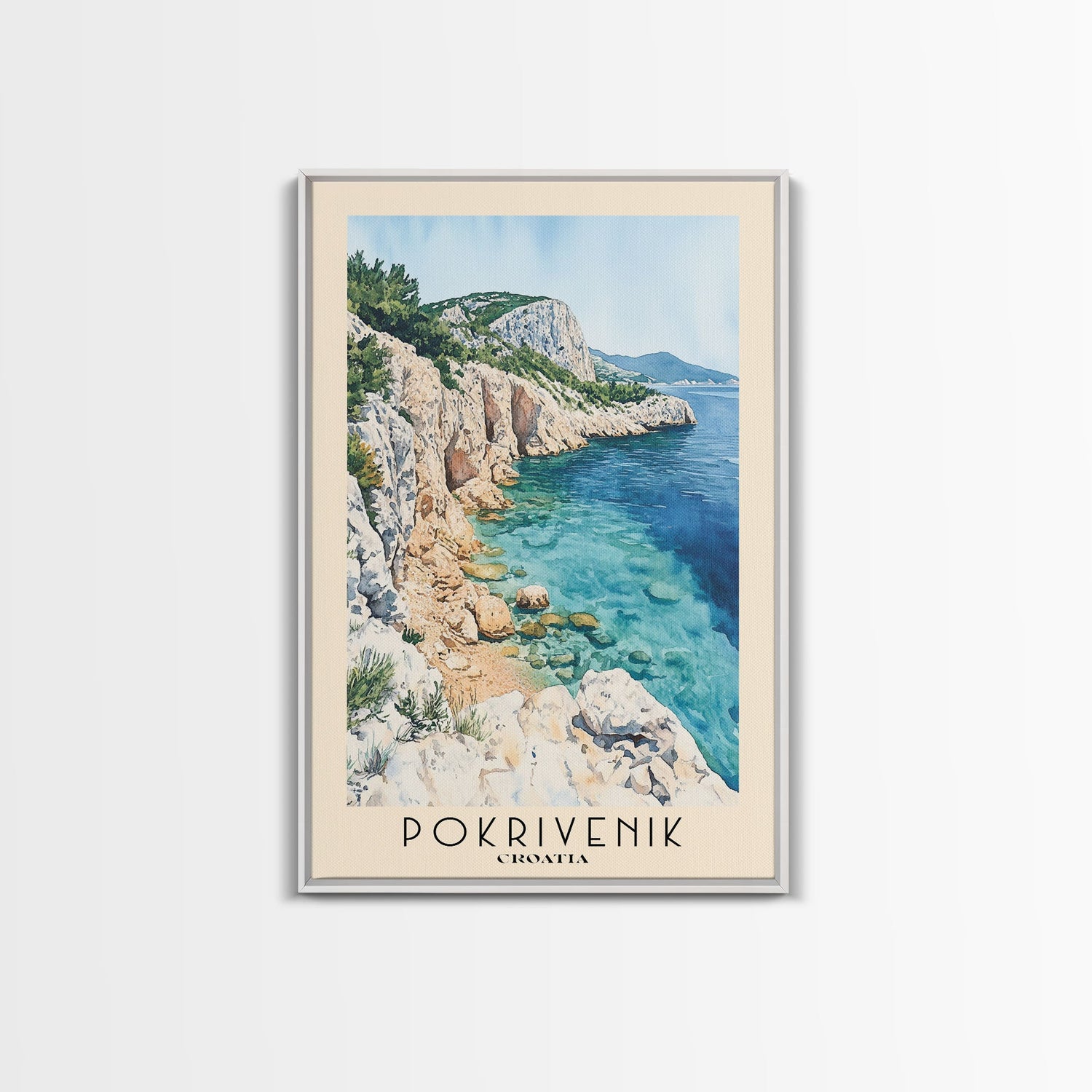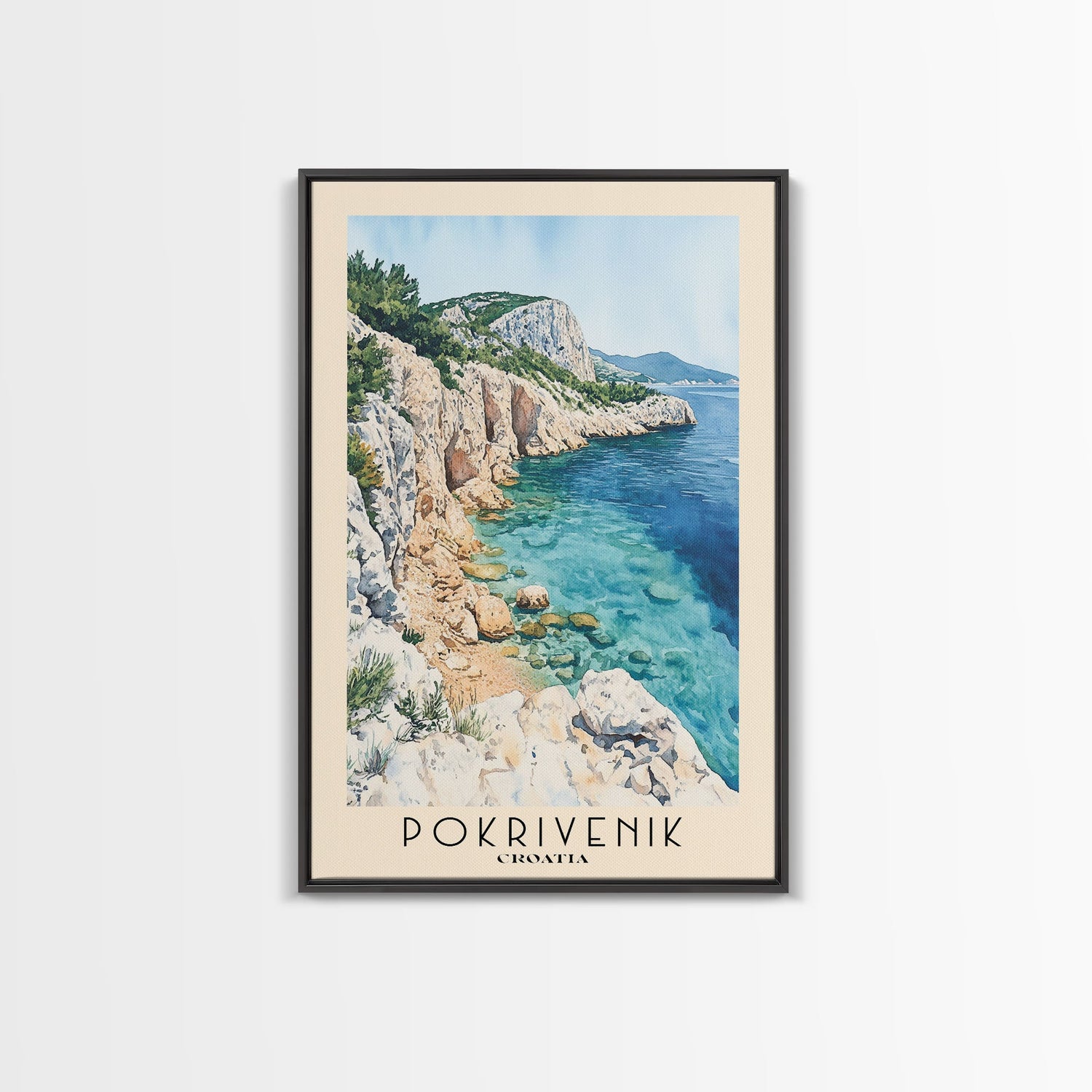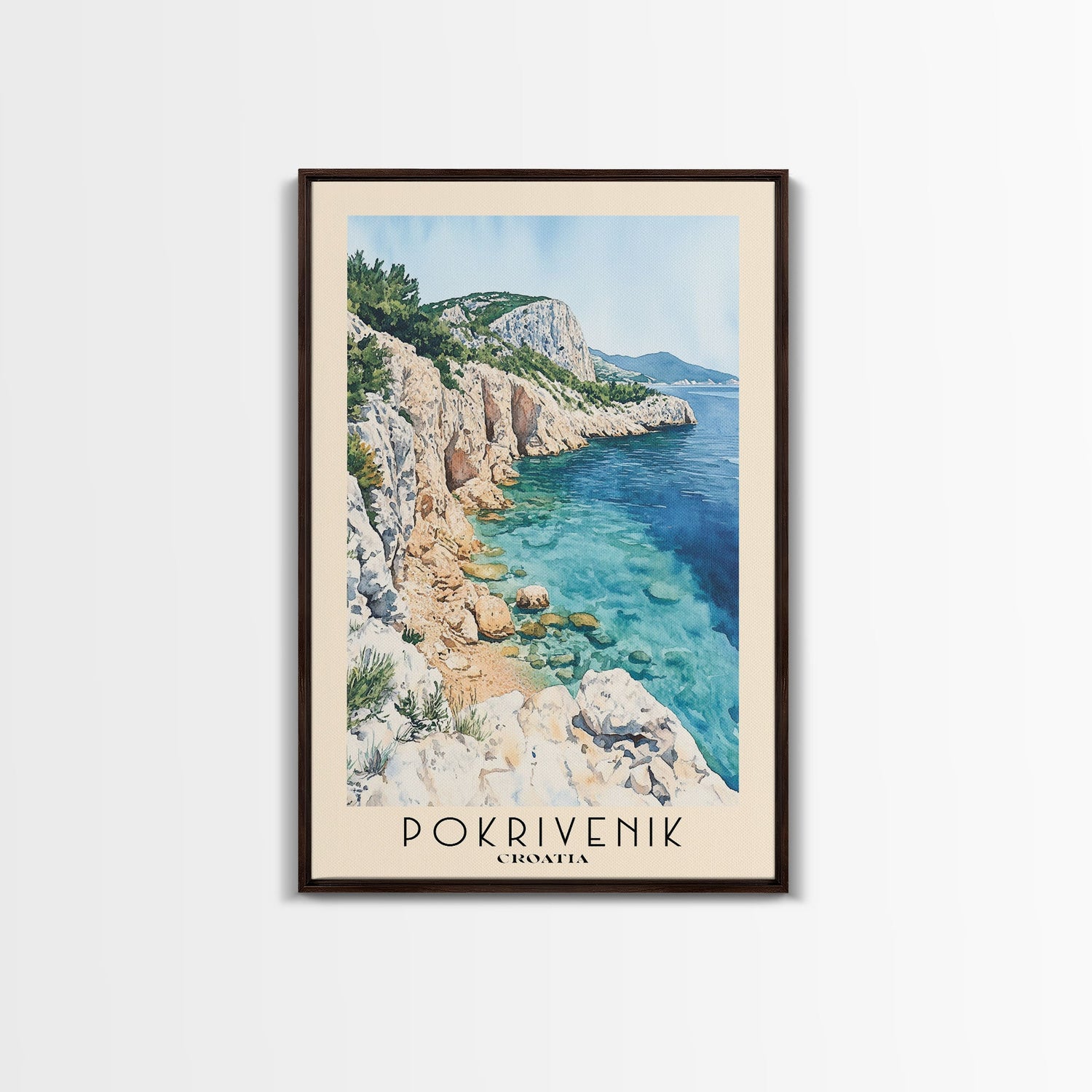 Pokrivenik, Croatia Watercolor Print, Vacation Gift, Croatia Wall Art, Beach Painting, Beach Decor, Large Wall Art, Wood Frame Art - 8x12 Inches / No Frame - Stretched Canvas Only is backordered and will ship as soon as it is back in stock.