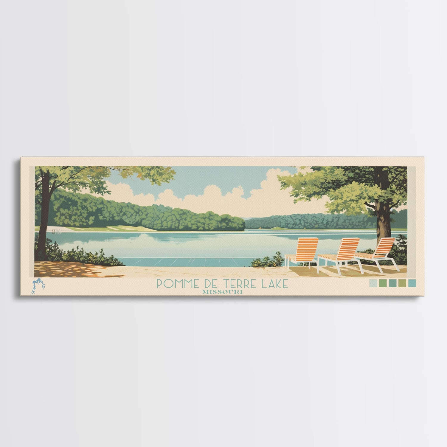 Pomme de Terre Lake, Missouri Framed Canvas Print, Living Room Art, Midcentury Modern, Pop Art, Panoramic Travel Poster, Wall Decor