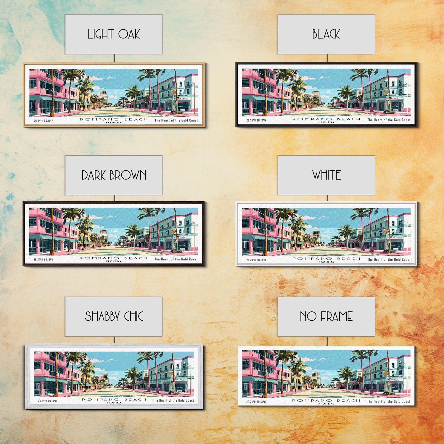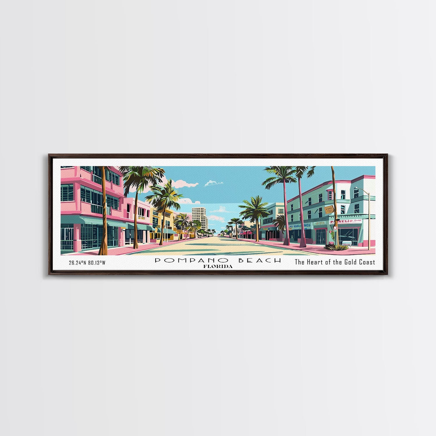 Pompano Beach Florida Panoramic Painting, Mid Century Modern Framed Canvas Print, Retro Pop Art Travel Poster, City Art, Office Wall Decor, Living Room Art