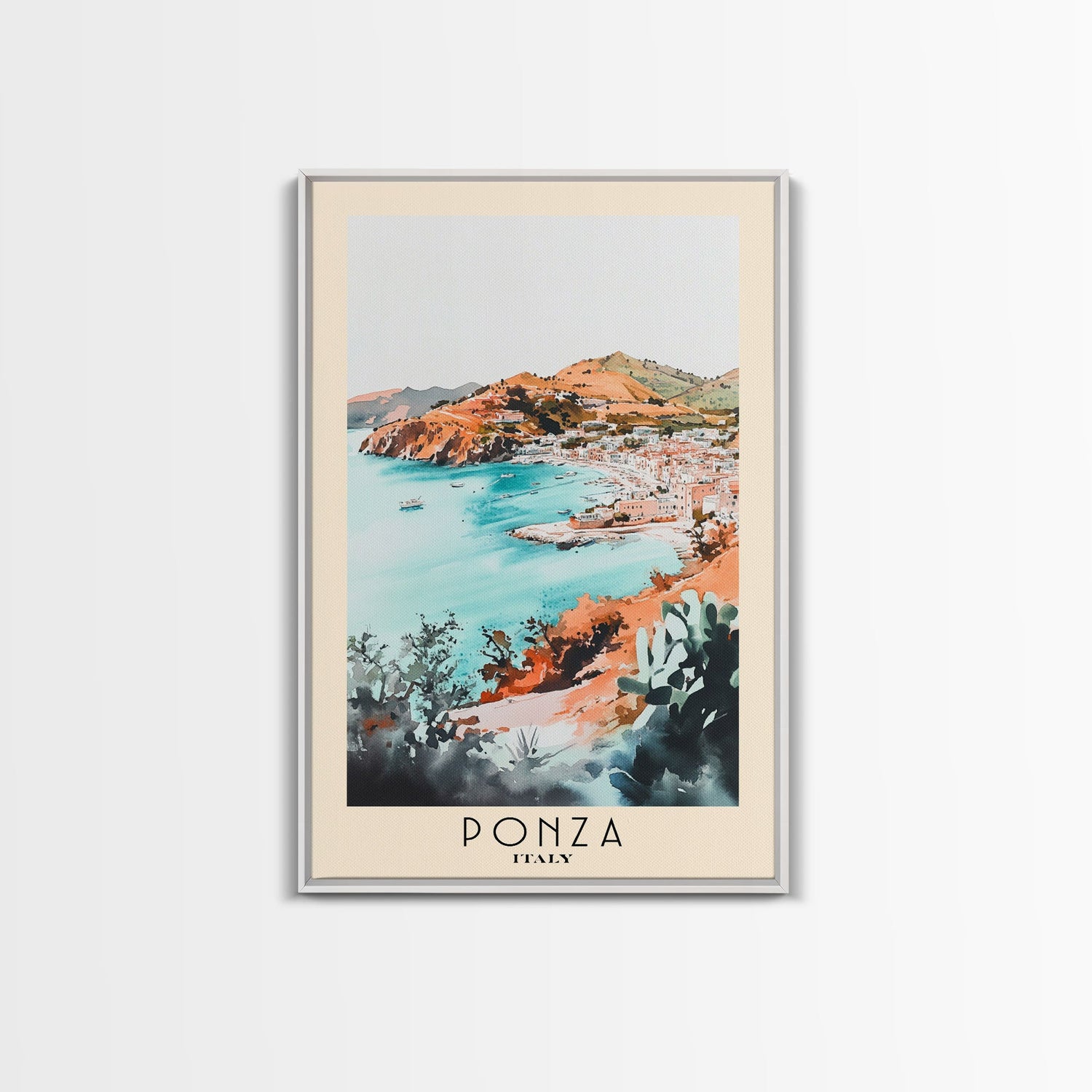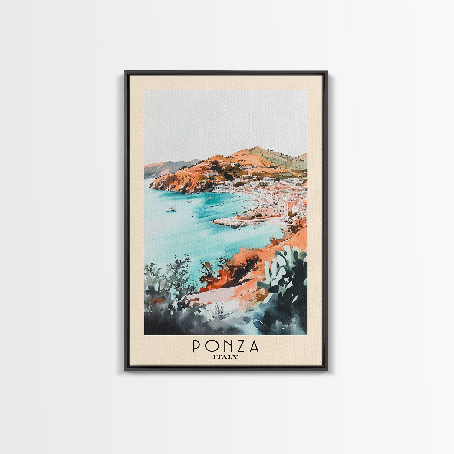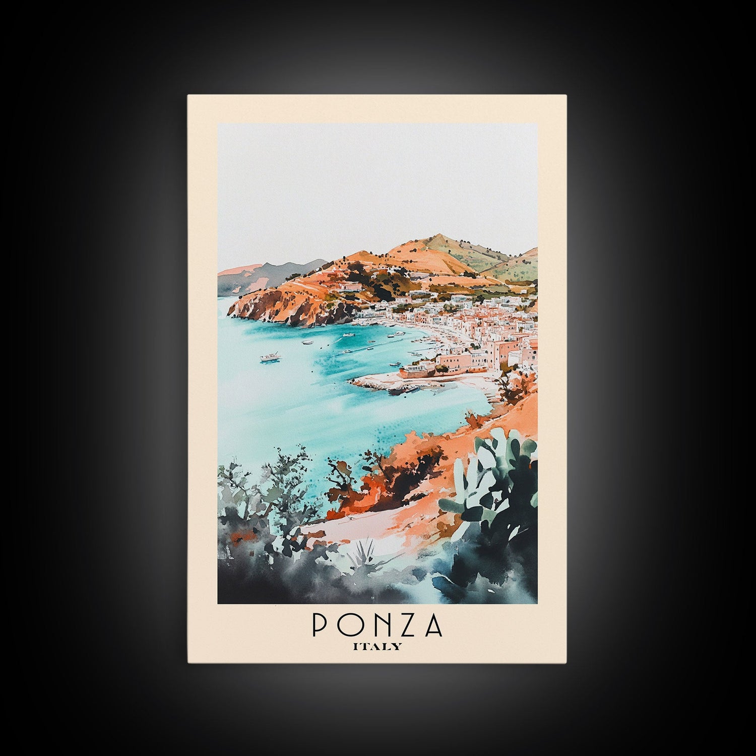 Ponza, Italy Watercolor Beach Print, Vacation Gift, Italy Wall Art, Framed Canvas Print, Framed Beach Painting