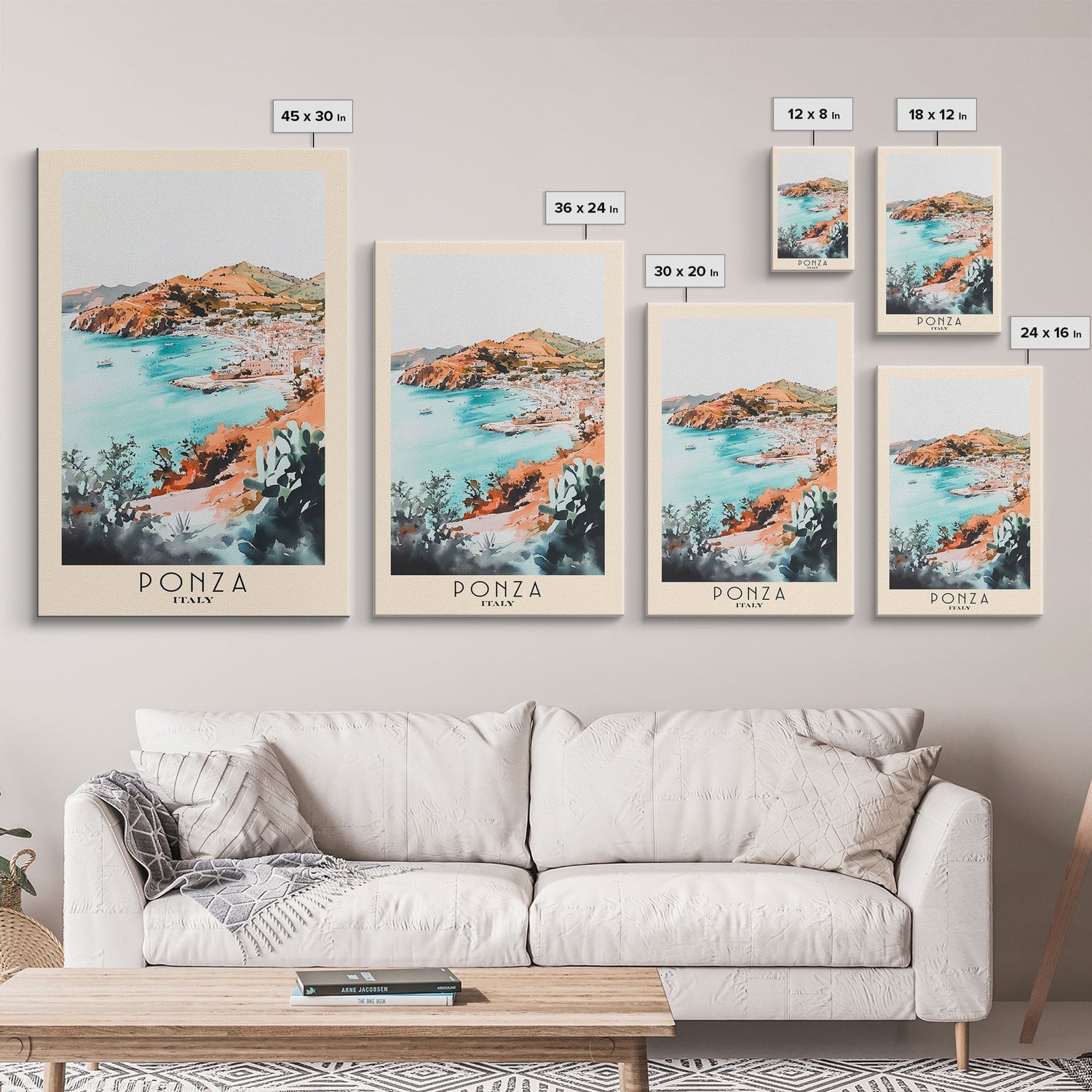 Ponza, Italy Watercolor Beach Print, Vacation Gift, Italy Wall Art, Framed Canvas Print, Framed Beach Painting - 8x12 Inches / No Frame - Stretched Canvas Only is backordered and will ship as soon as it is back in stock.