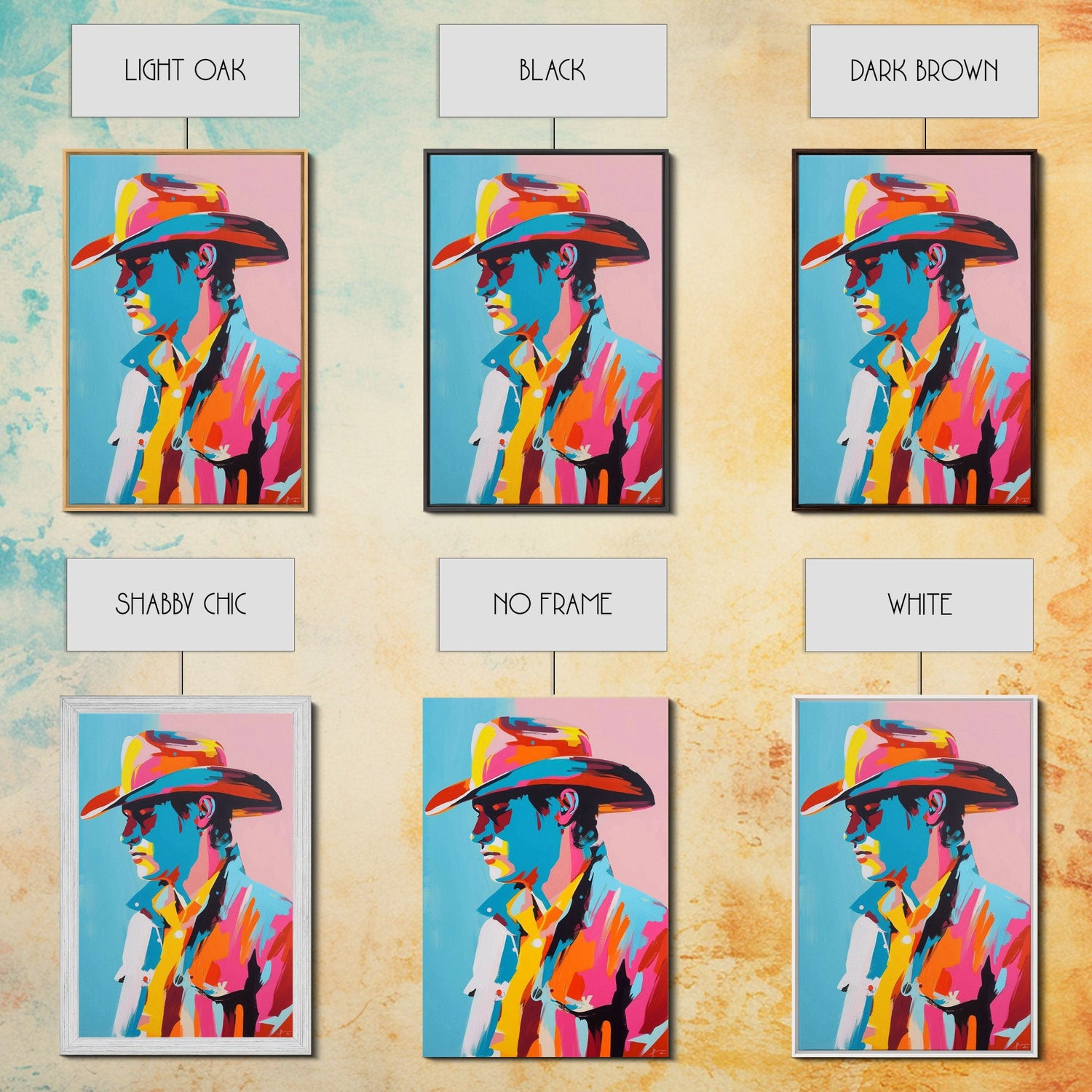 Pop Art Cowboy with Sunglasses - Framed Canvas Print, Bright Western Art, Contemporary Cowboy Wall Art for Bedroom Decor - 8x12 Inches / No Frame - Stretched Canvas Only is backordered and will ship as soon as it is back in stock.