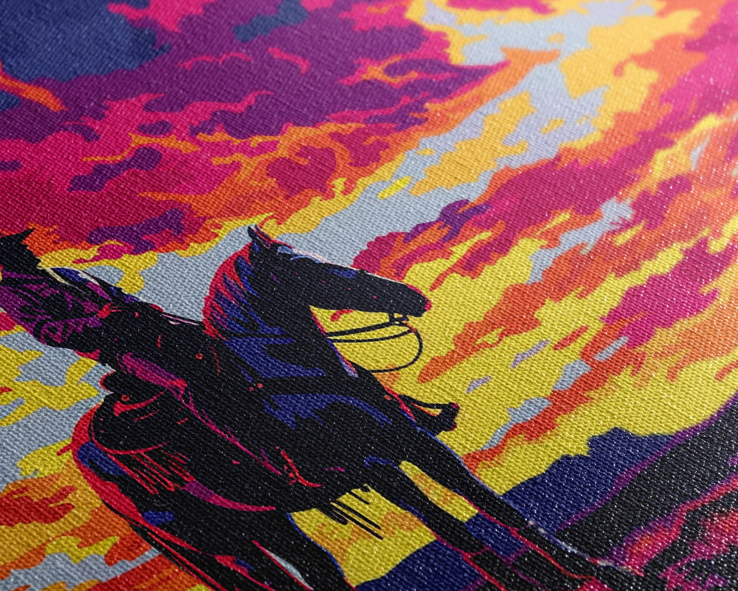 Pop Art Sunset Cowboy Painting Framed Canvas Print, Wild West Wall Art, Cowboy Print, Western Decor, Kitsch Whimsical Art