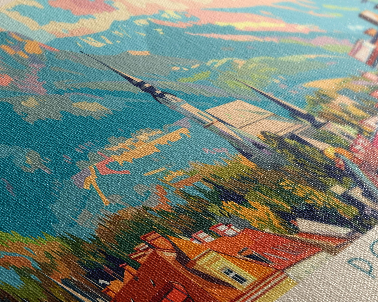 Most of our canvases are made in the USA, with the exception of canvases ordered with the light oak unstained frames, and any large canvases (24x48, 30x60, 16x48 and 20x60) ordered WITH a frame. These are temporarily made in and shipped from Europe, while we try to find a more consistent supplier in the USA.
