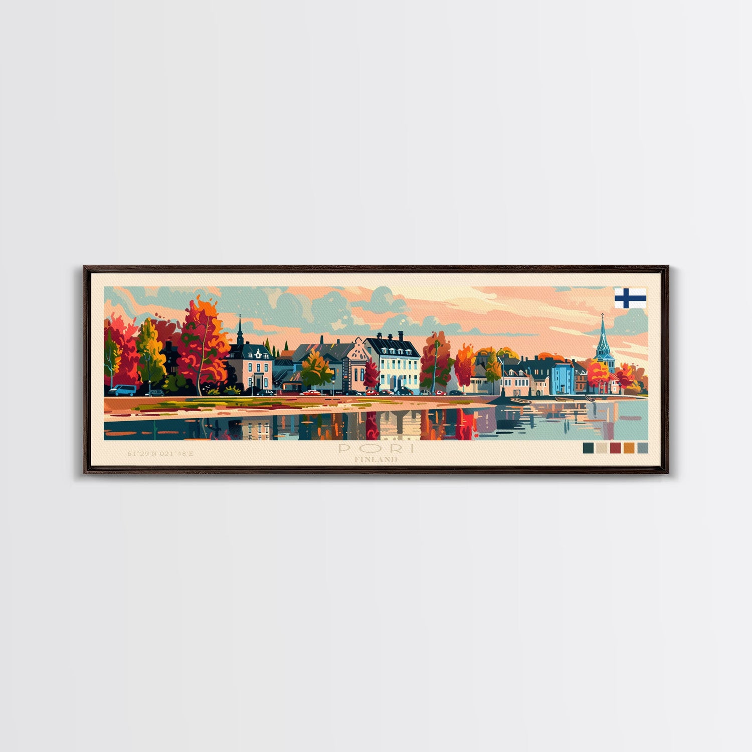 Pori Finland Travel Art, City Art, Framed Canvas Print or Metal Wall Art, Europe Travel Poster, Panoramic Wall Art, Extra Wide Wall Art