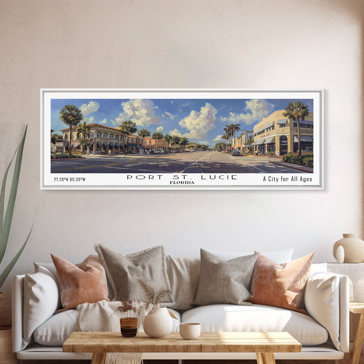 Port St. Lucie Florida Panoramic Print, Stylish Framed Canvas Print, City Travel Poster, Home Decor, Office Wall Art, Gift Idea