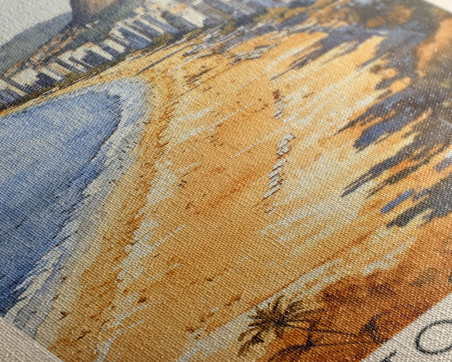 Most of our canvases are made in the USA, with the exception of canvases ordered with the light oak unstained frames, and any large canvases (24x48, 30x60, 16x48 and 20x60) ordered WITH a frame. These are temporarily made in and shipped from Europe, while we try to find a more consistent supplier in the USA.