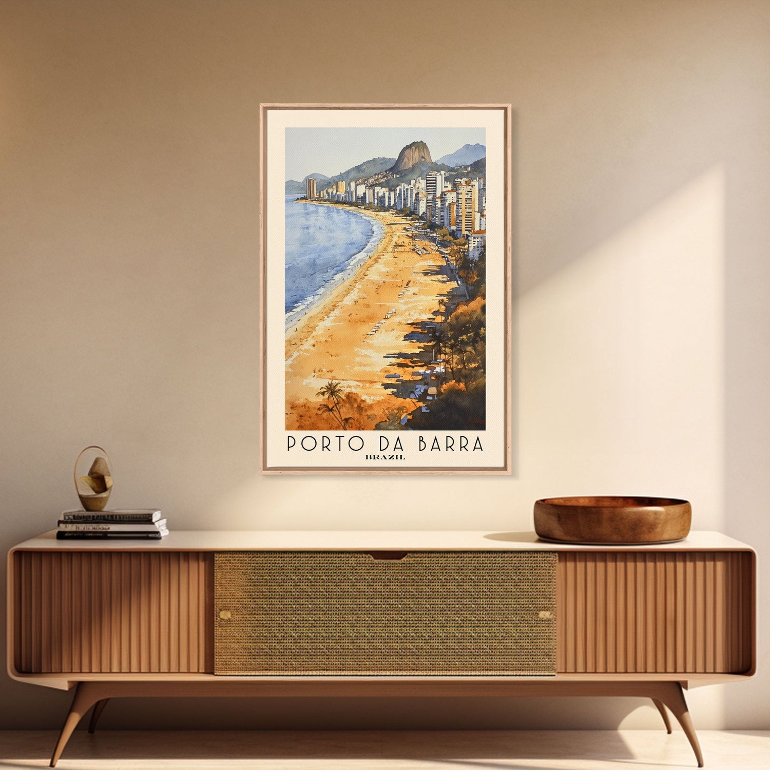 Porto da Barra, Brazil Watercolor Beach Print, Vacation Gift, Brazil Wall Art, Framed Canvas Print, Framed Beach Painting