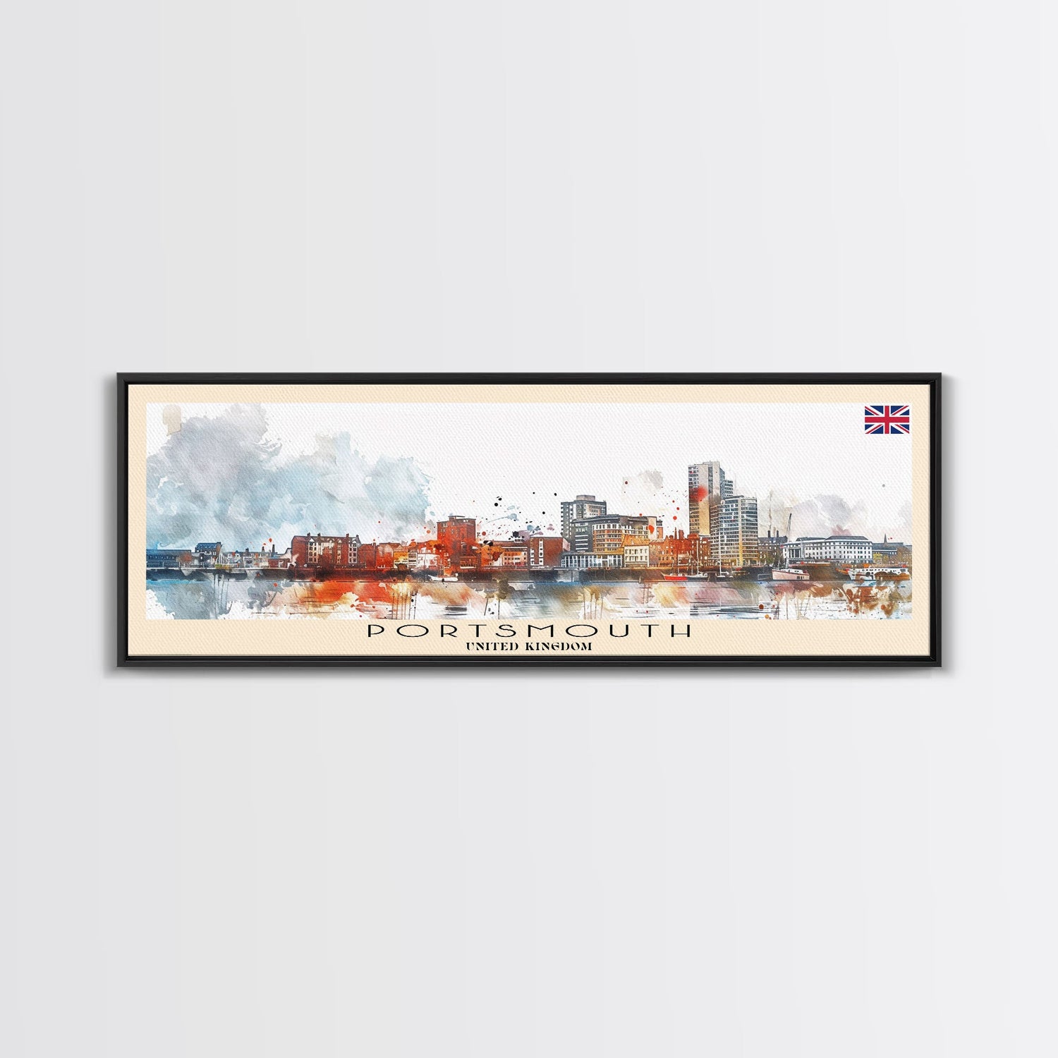 Portsmouth United Kingdom Wall Art, Panoramic Travel Poster, Panoramic Framed Canvas Print, City Wall Art, Wall Hanging Home Decor, Travel Art