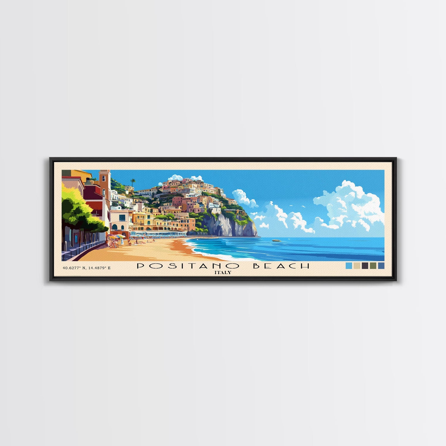Positano Beach, Italy Panoramic Print, Vacation Gift, Italy Wall Art, Beach Painting, Beach Decor, Beach Or Lakehouse Art