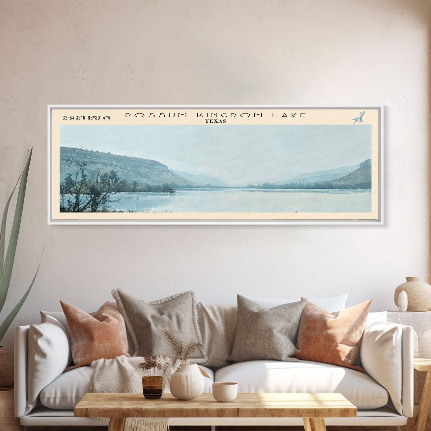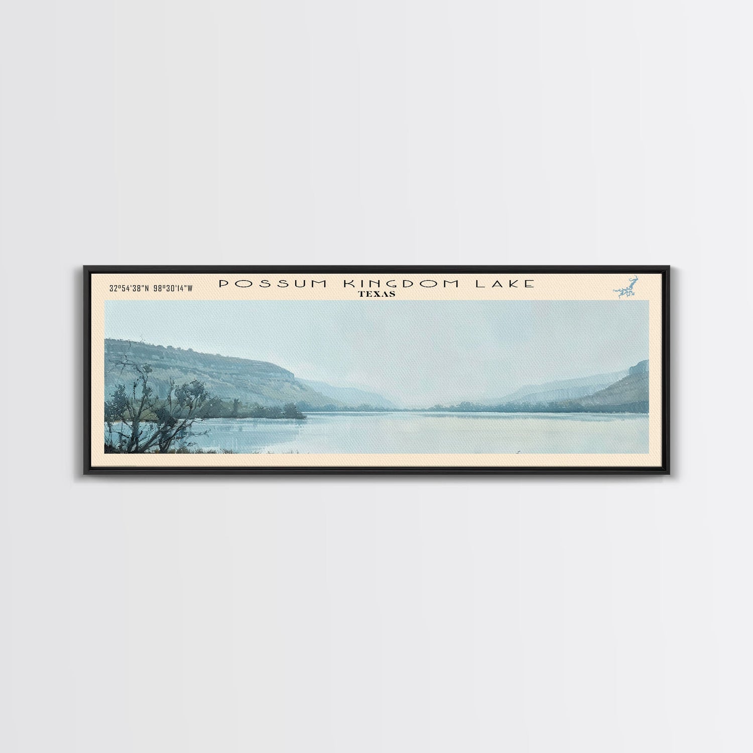 Possum Kingdom Lake Texas Framed Canvas Print, Lake House Decor, Panoramic Travel Poster, Scenic Wall Art, Modern Art