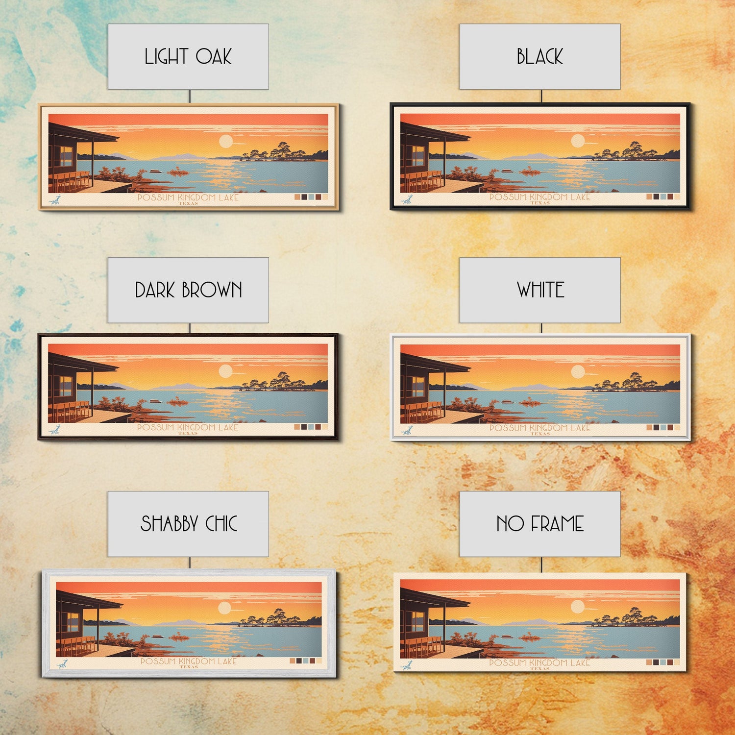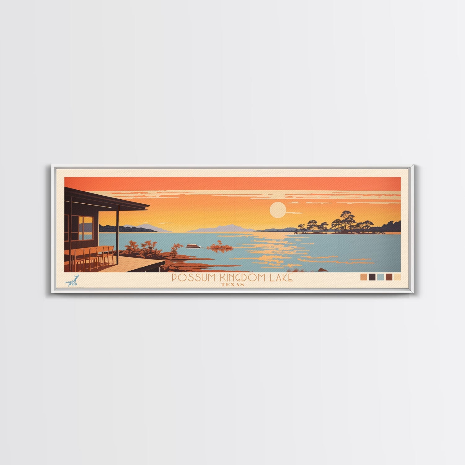 Possum Kingdom Lake, Texas Framed Canvas Print, Living Room Art, Midcentury Modern, Panoramic Wall Art, Travel Poster, Pop Art - 10x30 Inches / No Frame - Stretched Canvas Only is backordered and will ship as soon as it is back in stock.