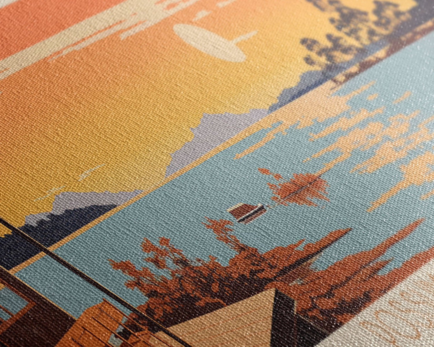 Possum Kingdom Lake, Texas Framed Canvas Print, Living Room Art, Midcentury Modern, Panoramic Wall Art, Travel Poster, Pop Art