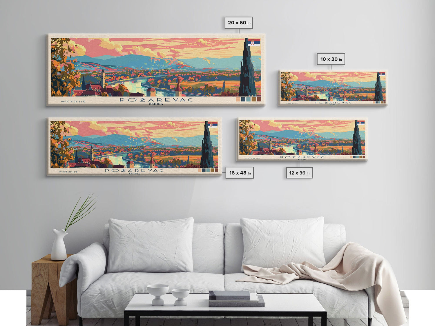 Pozarevac Serbia Travel Print Wall Art, Panoramic City Art, Travel Art, Wall Decor, Vacation Gift, Framed Canvas Print Or Metal Art - 10x30 Inches / No Frame - Stretched Canvas Only is backordered and will ship as soon as it is back in stock.